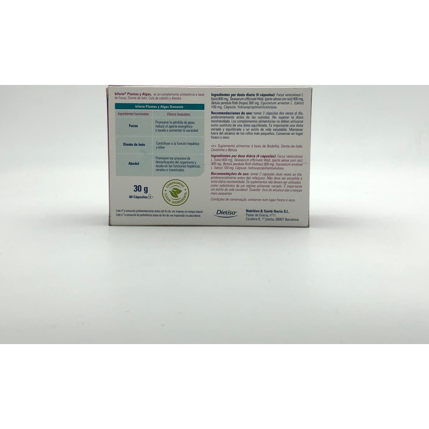 Biform Plantas Y Algas Drenante es un complemento alimenticio que ayuda a disminuir la retención de líquidos y tiene un efecto saciante para ayudarte en procesos de pérdida de peso.