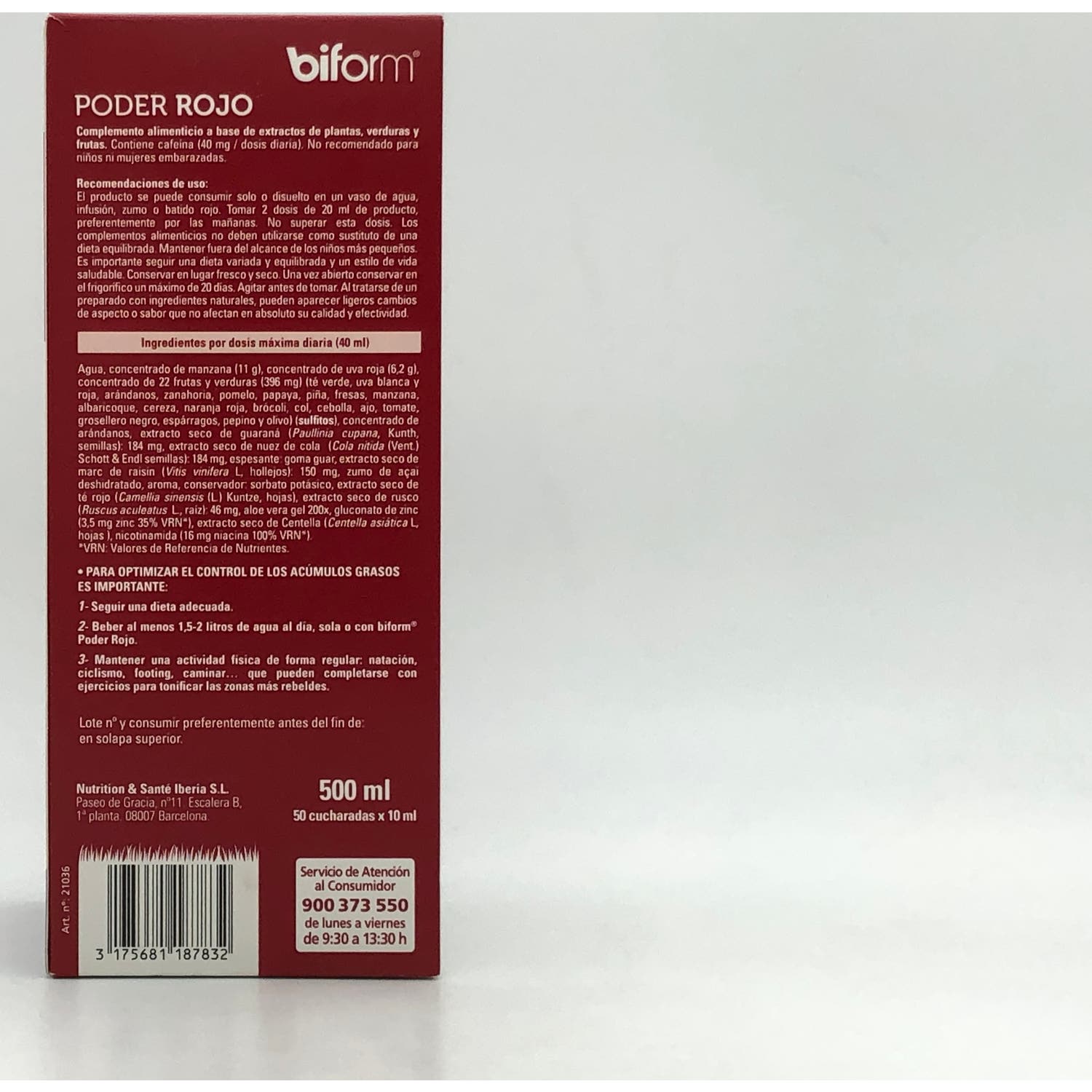 Biform Poder Rojo 500ml es un complemento alimenticio que actúa como coadyuvante en procesos de control de peso y a mantener el bienestar diario.