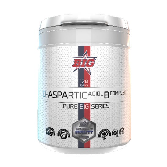 Big D-Aspartic Acid+B Complex 120caps es un complemento alimenticio a base de ácido aspártico y vitaminas del grupo B que ayuda a incrementar el desarrollo del músculo. Asimismo, contribuye a mejorar el rendimiento deportivo y a propiciar el crecimiento de los tejidos. Contiene 120 cápsulas.