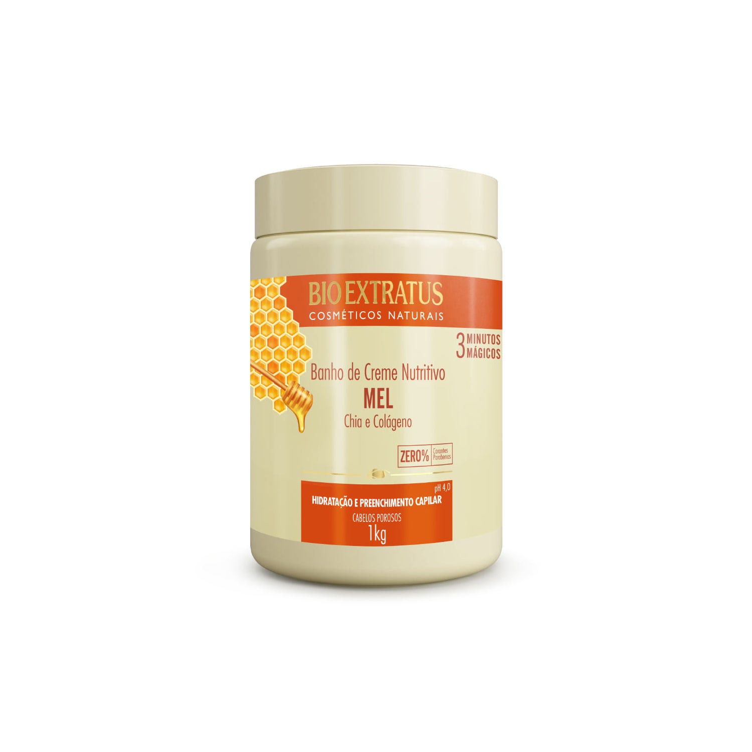Bio Extratus Mel Banho de Creme 1kg es un tratamiento capilar diseñado para proporcionar una hidratación profunda y nutrición a cabellos porosos. Su fórmula innovadora combina: