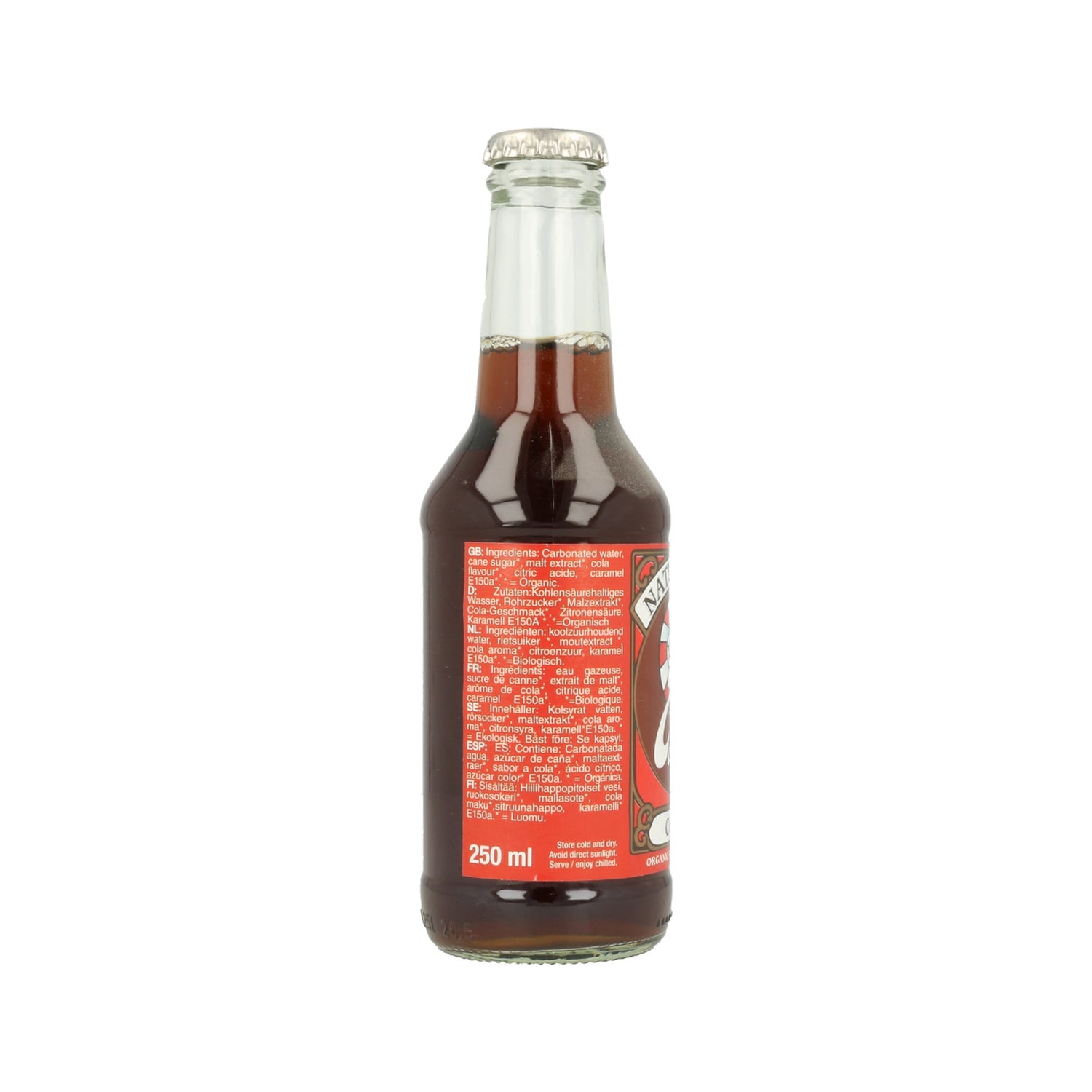 Bebida refrescante carbonatada con sabor a cola, a partir de una mezcla de especias. Endulzada con caramelos de azúcar de caña. No contiene cafeína. Con extracto de malta, elaborada con ingredientes procedentes de agricultura biológica. Recomendada para beber fría y disfrutar del dulce sabor con suave gasificación.