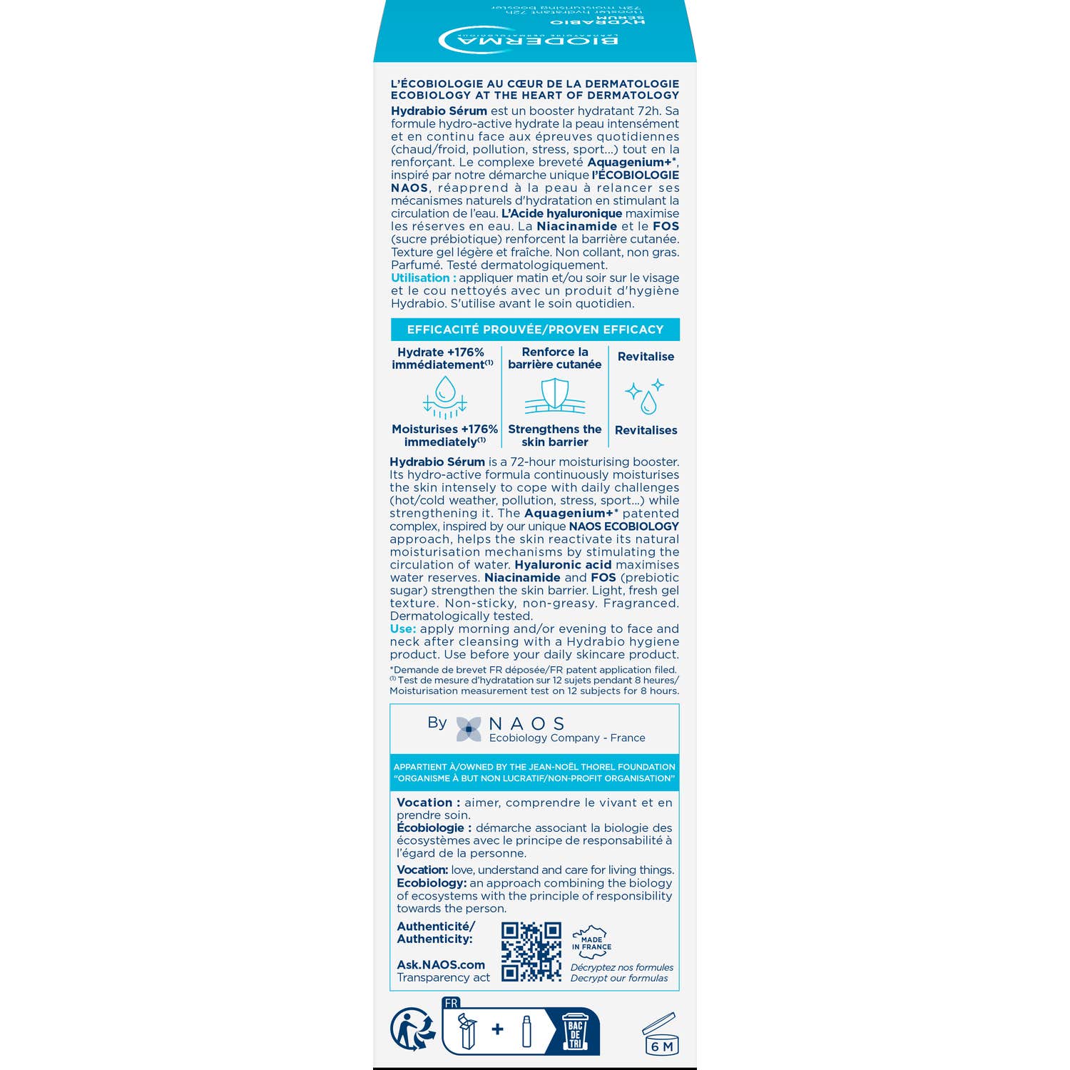 Por su innovador sistema patentado Aquagenium, Bioderma Hydrabio Serum ofrece una estimulación en la capacidad celular de la piel, consiguiendo retener en la superficie cutánea el agua necesaria para mantener el equilibrio de la piel.