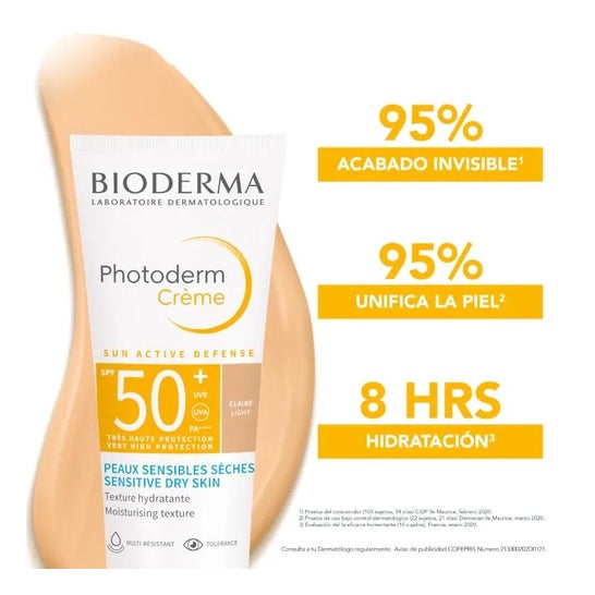 Bioderma Photoderm Crema Color SPF50+ Claro 40ml es una crema solar que ayuda a proteger la piel sensible con rojeces.