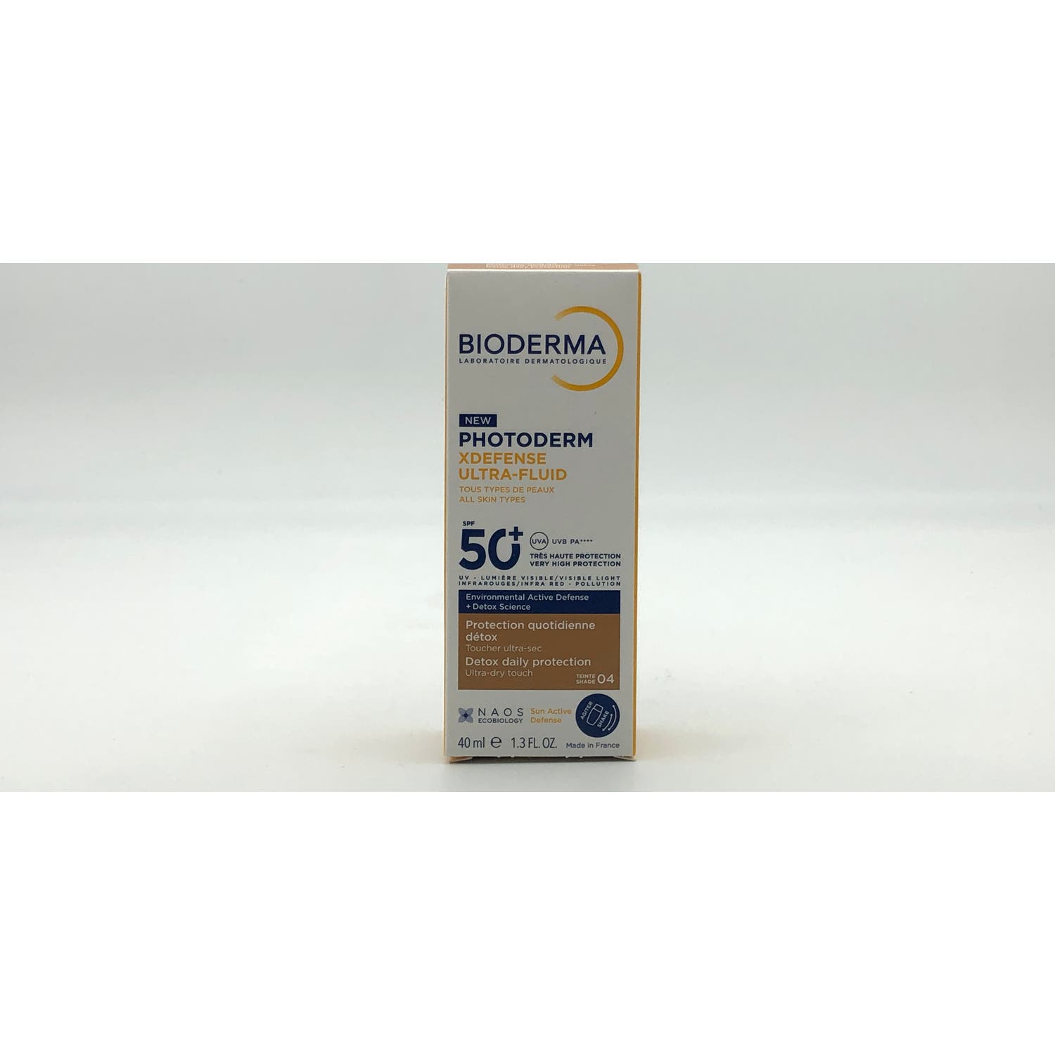 Photoderm XDefense Ultra-Fluid SPF50+ Tono 04: Protector solar facial ligero con acción detox y textura ultra fluida.