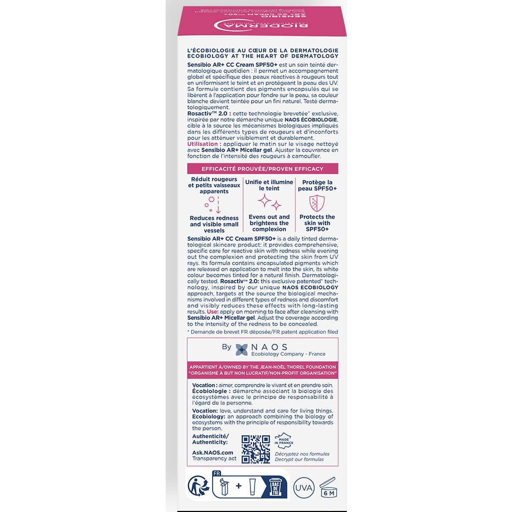 Sensibio AR+ CC Cream SPF50+, protector solar para la rosácea calmante y anti-rojeces.