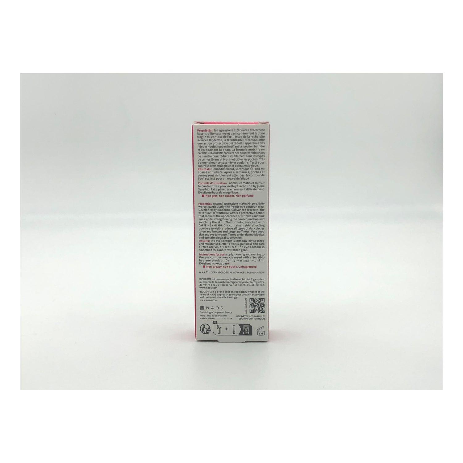 Formulado con cafeína, glabridina, vitamina E y carnosina, ayuda a reducir las ojeras, las bolsas y las líneas de expresión, y favorece un aspecto descansado.