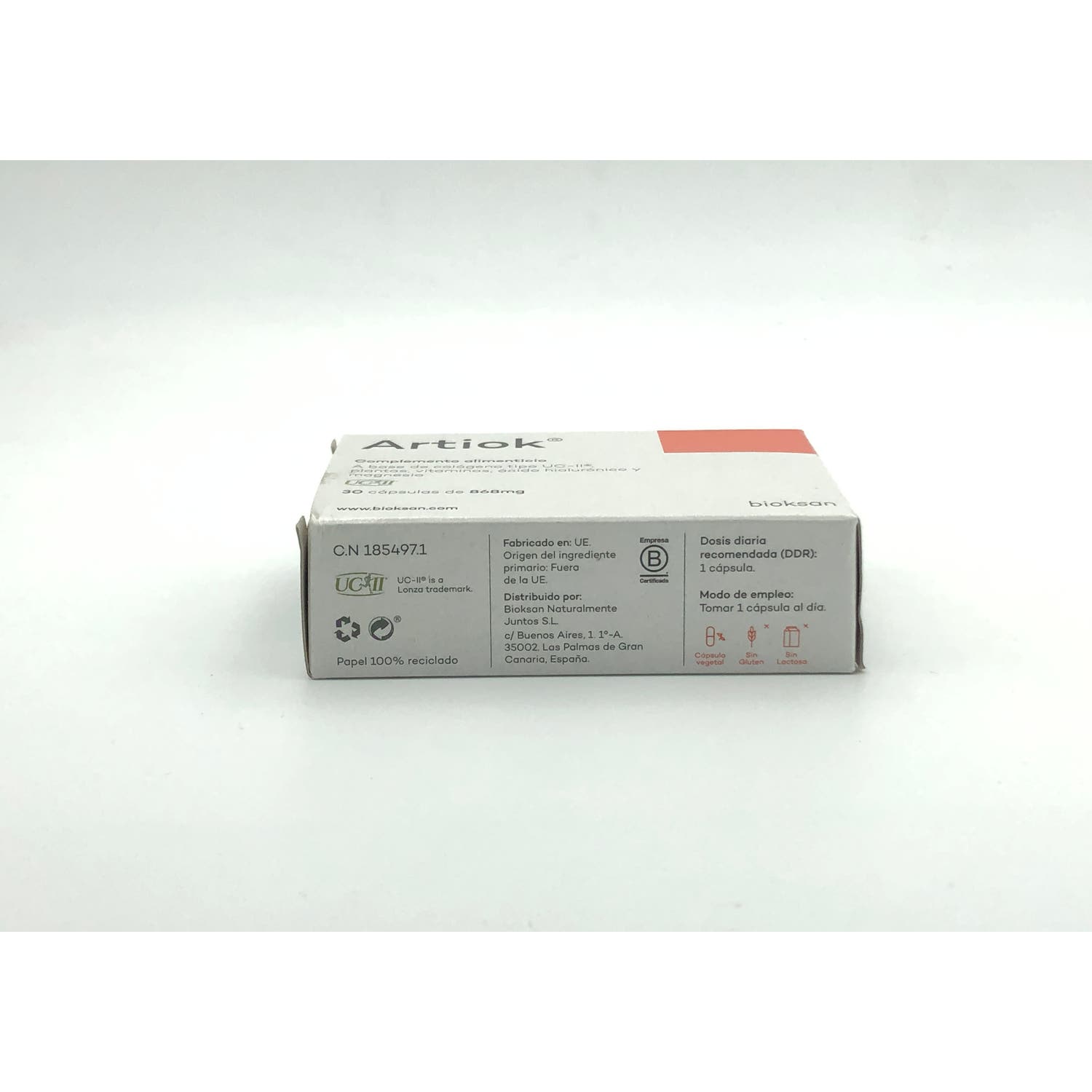 Bioksan Artiok 30caps es un complemento alimenticio a base de colágeno tipo II no desnaturalizado (UC-II)®, ácido hialurónico, magnesio, cúrcuma, boswellia y vitaminas del grupo B.