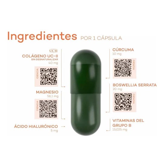 Está indicado para mejorar la inflamación y las molestias articulares en adultos. Además, contribuye a proporcionar elasticidad y firmeza a los tendones y ligamentos.