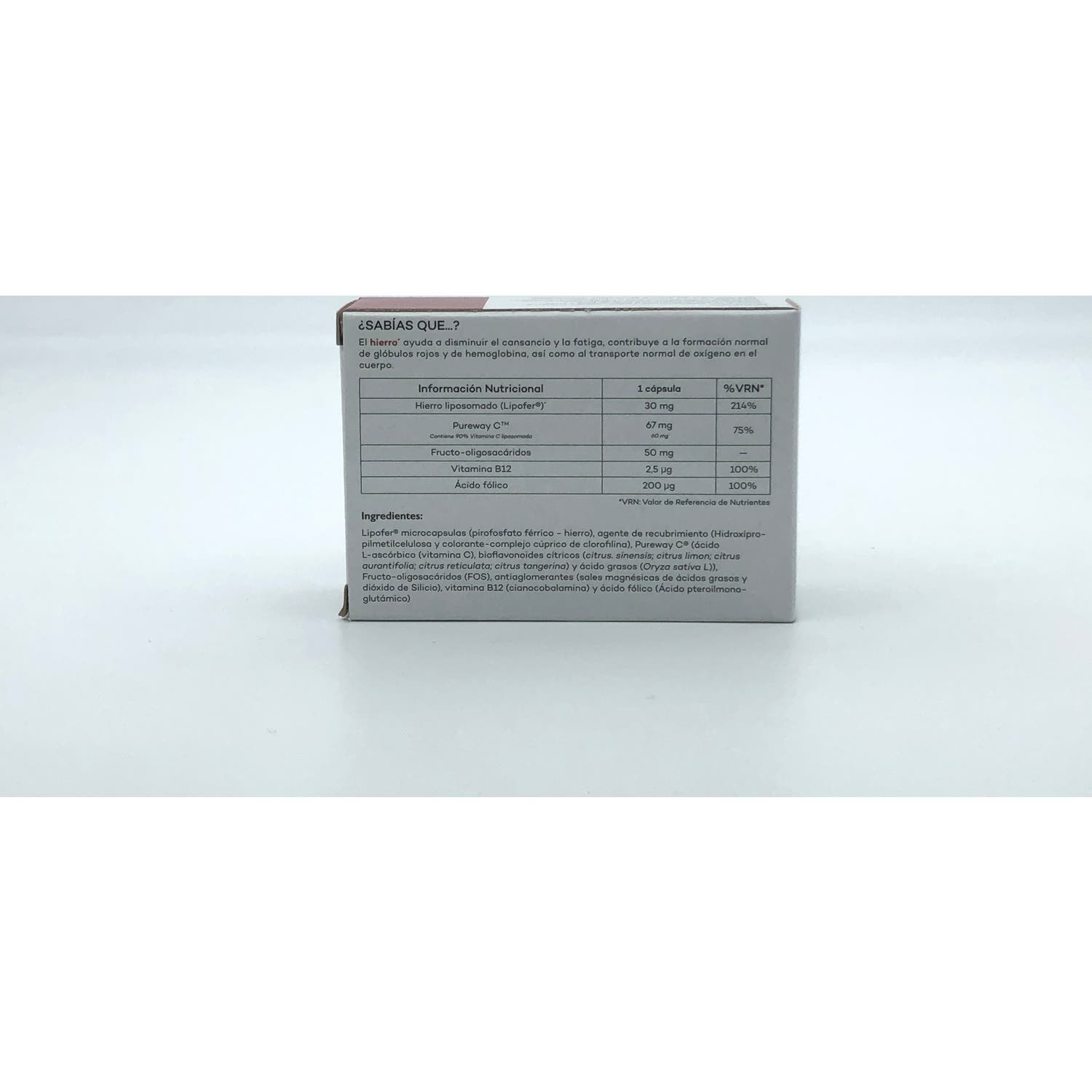 Complemento alimenticio formulado con hierro, prebióticos y un complejo vitamínico. Apoya el funcionamiento normal del sistema inmune y contribuye a mantener niveles constantes de energía durante el día.