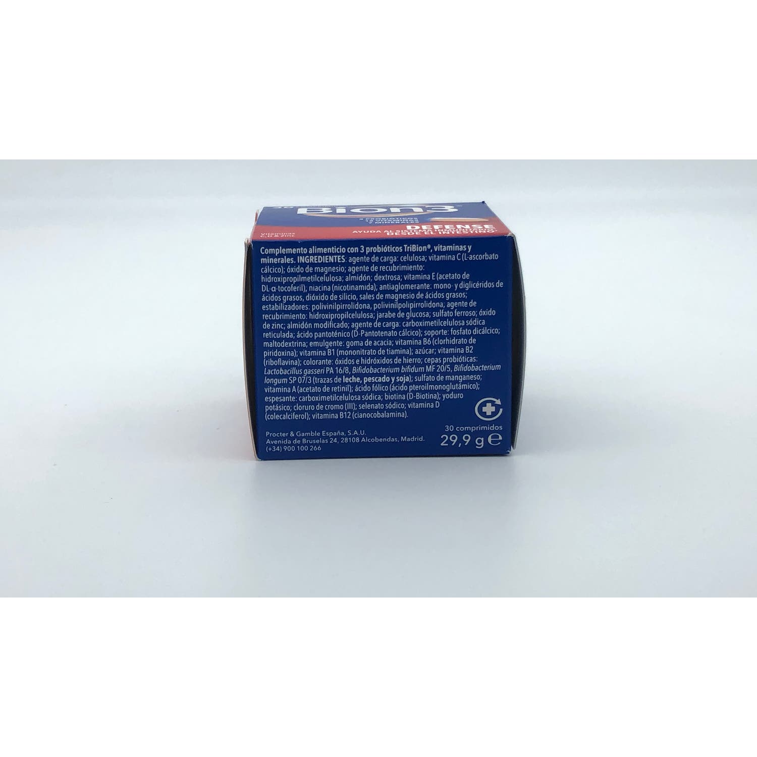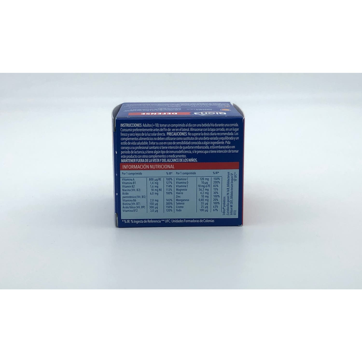 Es un complemento alimenticio Bion3 que refuerza el sistema inmunológico. Ha sido elaborado en formato de comprimido. Su fórmula combina vitaminas, minerales y fermentos TriBion (Lactobacillus y Bifidobacterium). Contribuye a disminuir el cansancio y la fatiga, así como también a incrementar las defensas naturales del cuerpo. Actúa como antioxidante y protege las células. Aporta energía y vialidad gracias a la presencia del complejo de vitaminas B en su composición.