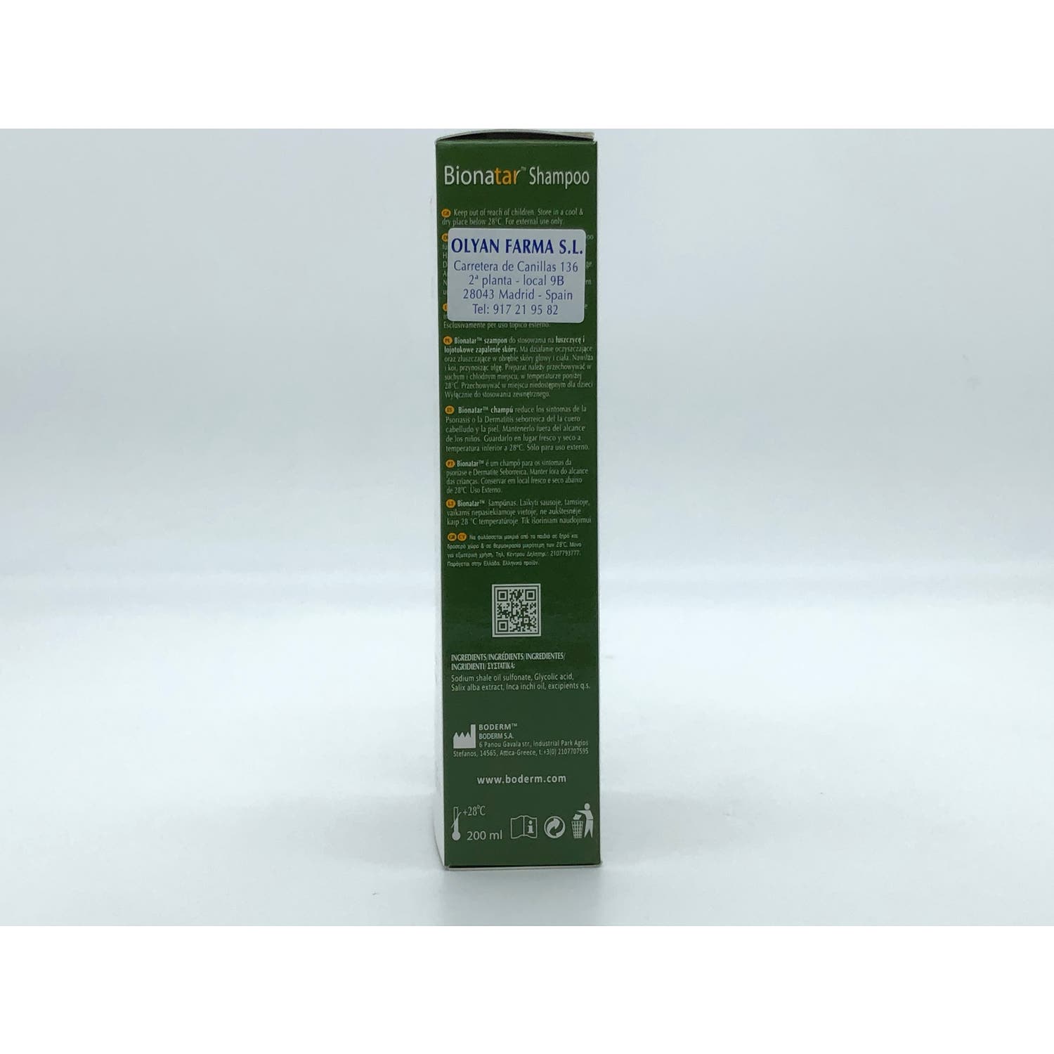 La fórmula de Bionatar champú incluye los siguientes activos: Ictiol pale, que actúa como antiinflamatorio y antifúngico, así como regula el exceso de producción de seboaceite de Incha inchi, que contiene ácidos grasos poliinsaturados como los de omega 3, de acción antiinflamatoria, y contribuye también a mantener el balance lipídico de la piel y a eliminar y prevenir los problemas de queratinización; extracto de Sauce blanco, que además de ser antiinflamatorio, aporta brillo y potencia el color del cabello; y ácido glicólico, que elimina las escamas propias de la psoriasis y ayuda a la penetración del resto de activos.
