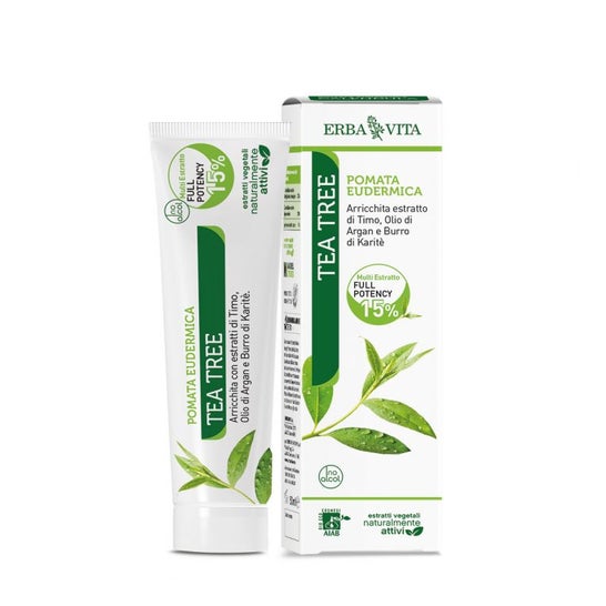 Ungüento formulado a base de aceite orgánico de almendras dulces, aceites esenciales de árbol de té, lavanda, oliva e hidrolato orgánico de tomillo. Favorece el equilibrio cutáneo y ayuda a regular la producción sebácea y sudoral de la piel. Está indicado en caso de sensación de picor o tirantez.