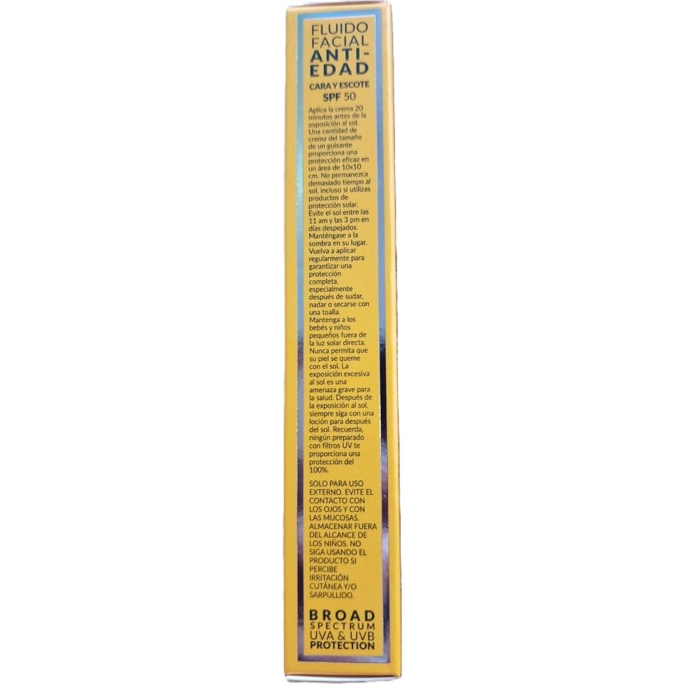 Con un factor de protección solar de SPF 50, este fluido protege eficazmente contra los rayos UVA y UVB, que son factores principales en la aparición de manchas y decoloraciones en la piel. Además, su aplicación ayuda a mantener la hidratación y a combatir la sequedad, así como los signos de envejecimiento prematuro.