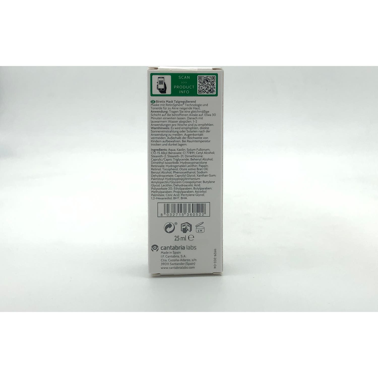 Biretix Mask Mascarilla Seborreguladora 25ml es una mascarilla facial que ayuda a regular el sebo y a prevenir la aparición de espinillas y puntos negros, gracias a su fórmula con arcilla.