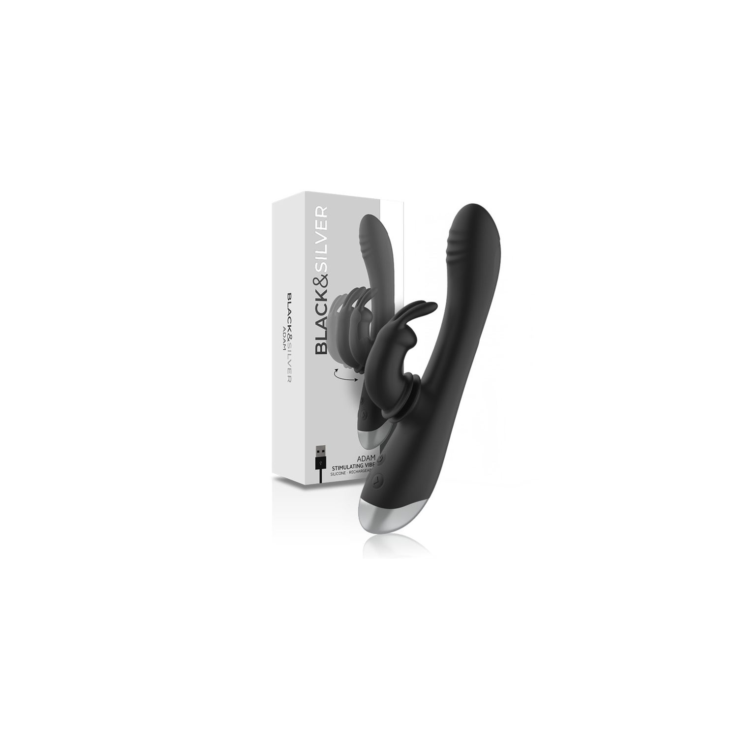 Black&Silver Adam Stimulating Vibe Rabbit Silicone Black es un estimulador íntimo diseñado para realzar el placer femenino mediante su doble acción en la zona íntima y el clítoris. Este dispositivo de BLACK&SILVER es ideal para intensificar sensaciones y explorar nuevas formas de bienestar sexual.
