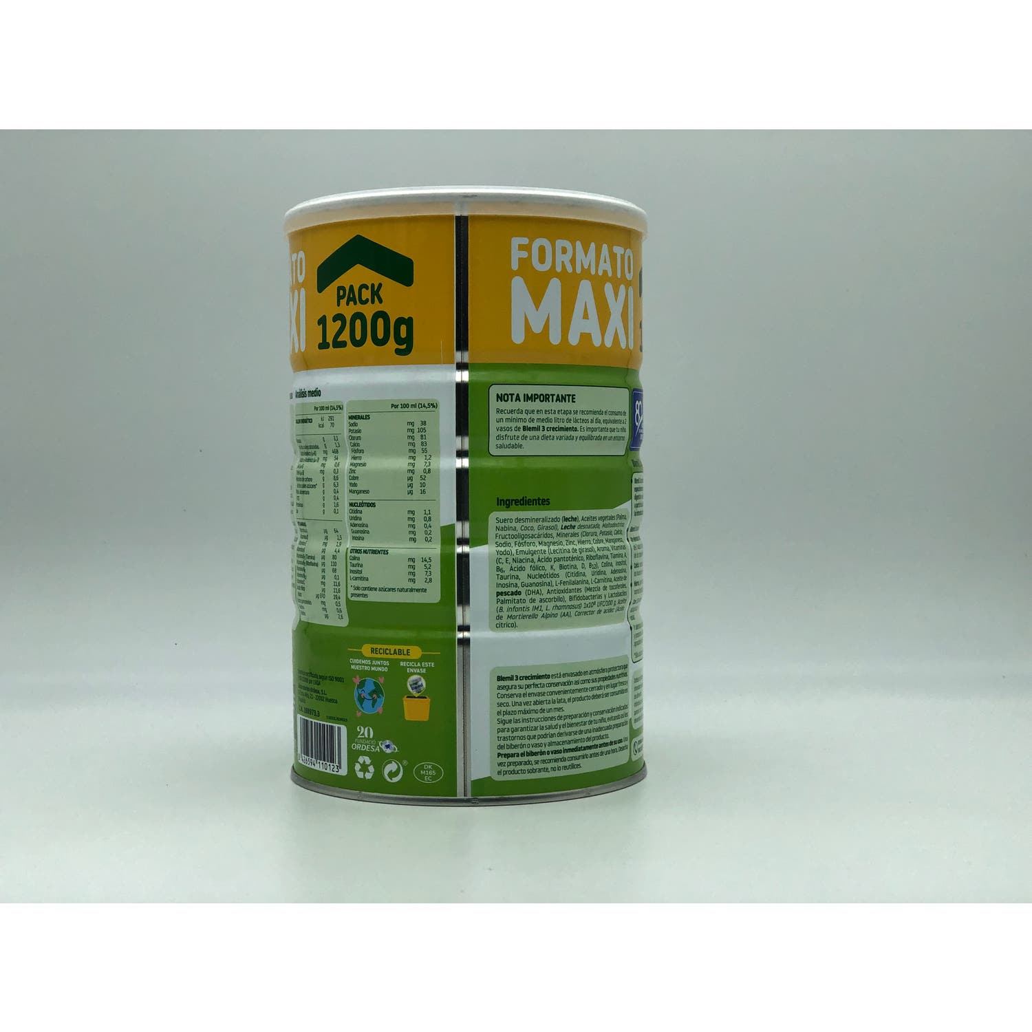 La fórmula está enriquecida en nucleótidos, fructooligosacáridos, lactobacilos y bifidobacterias que garantizan un refuerzo del sistema inmune, la visión, el cerebro y sistema digestivo. Además de contener proteínas, sales minerales, calcio, hierro y 13 vitaminas.