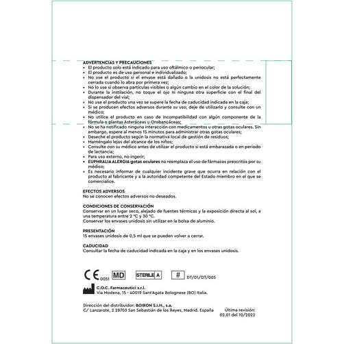 Boiron Euphralia Alergia Gotas Oculares 15x0.5 ml es un producto diseñado para ofrecer alivio a los ojos afectados por: