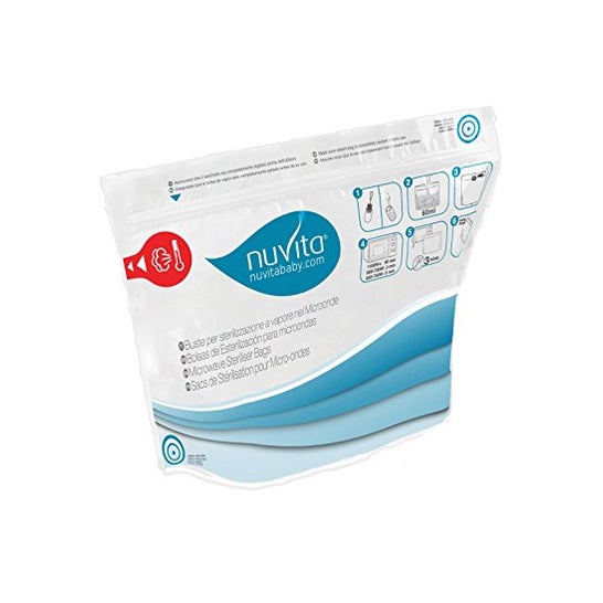 Bolsas para horno esterilizadas NUVITA están diseñadas para la esterilización por vapor de productos de alimentación infantil, como biberones, tetinas, chupetes y accesorios de lactancia. Estas bolsas eliminan el 99,9% de gérmenes y bacterias en pocos minutos, ofreciendo una alternativa segura y libre de productos químicos para los cuidadores que buscan máxima protección e higiene.