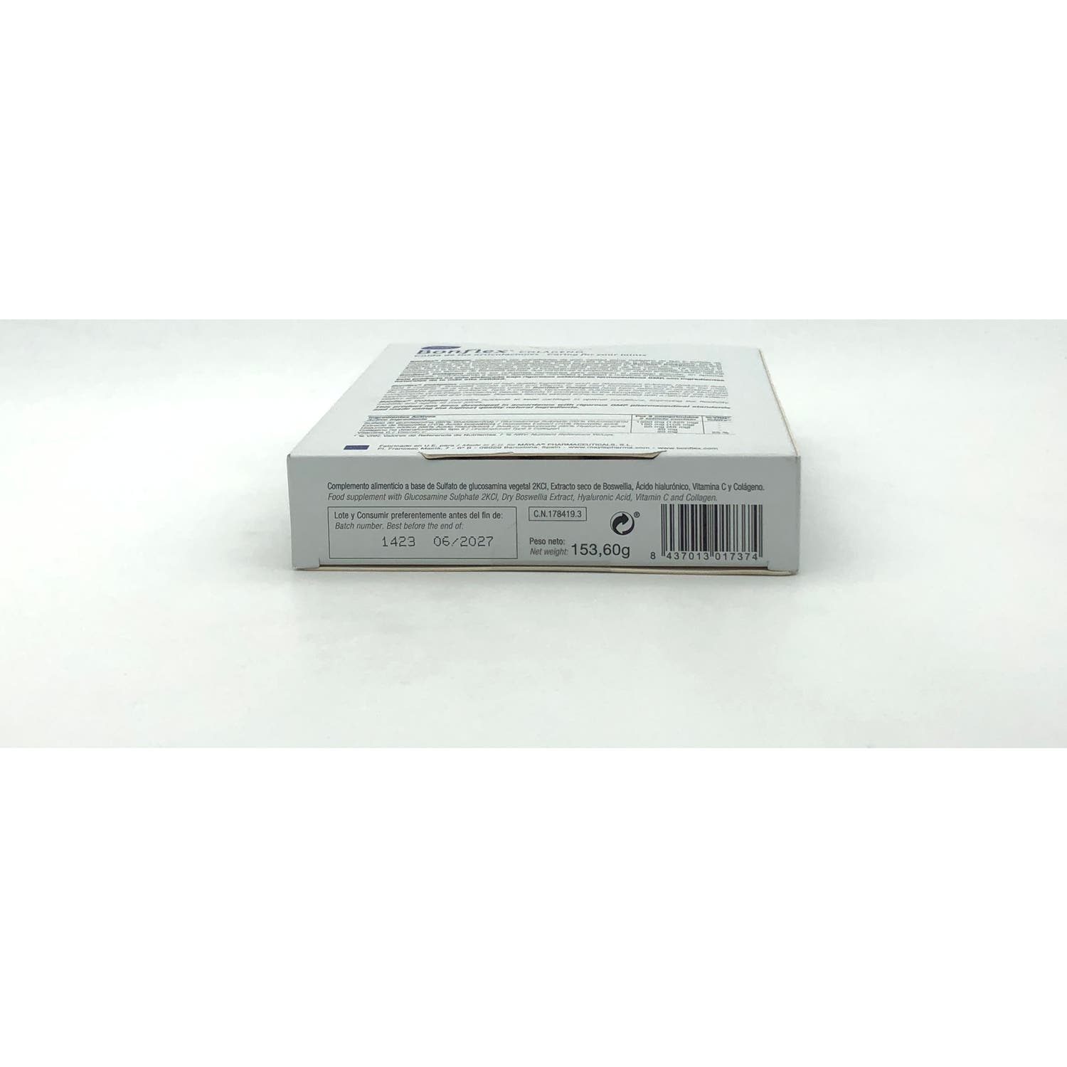 Gracias a la presencia del colágeno en su formulación, ofrece propiedades reestructurantes y antiinflamatorias que favorecen la flexibilidad de las articulaciones. Además, también incorpora colágeno tipo II, sulfato de glucosamina, ácido hialurónico, Boswellia serrata y vitamina C, que contribuyen a reducir la rigidez articular y a prevenir el deterioro de los huesos y las células del cartílago articular.