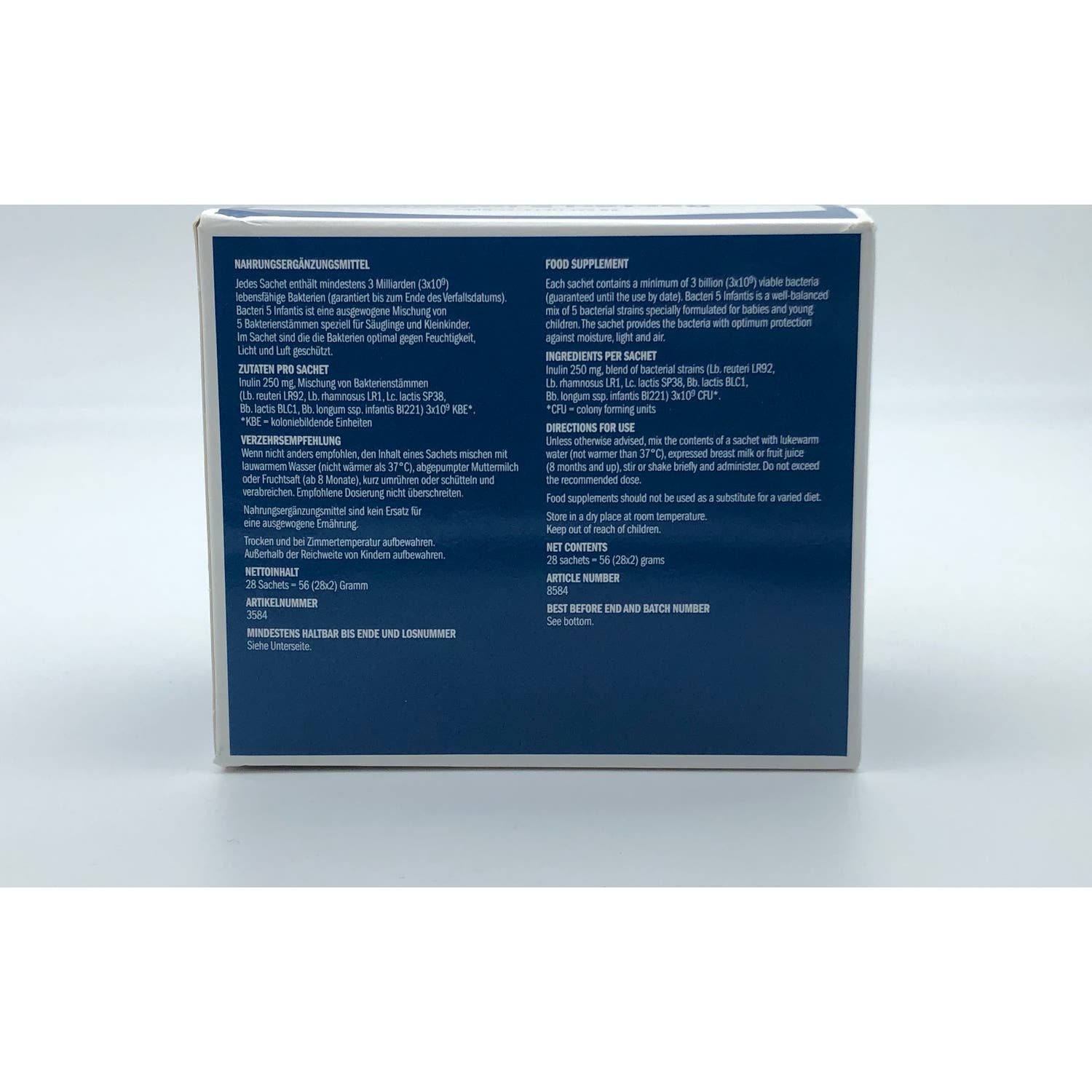 Bonusan Bacteri 5 Infantis 28uds es un complemento alimenticio diseñado para bebés, niños y embarazadas, elaborado a partir de 17 cepas bacterianas diferentes.