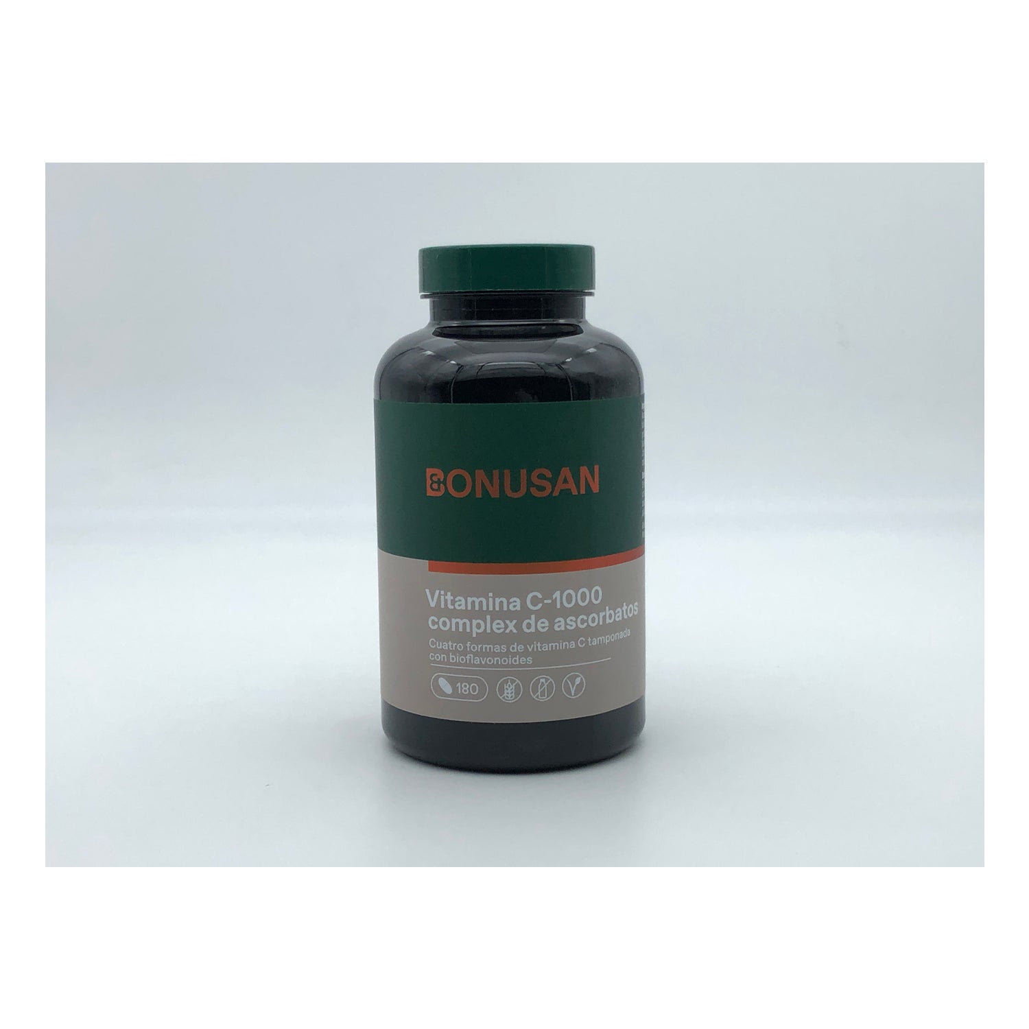 Bonusan Vitamina C 1000mg Ascorb 180comp es un complemento alimenticio a base de vitamina C complejo de ascorbatos.