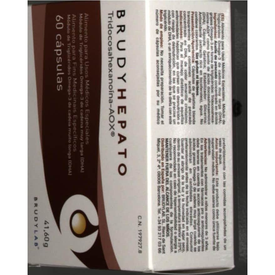 Las Brudy Hepato son cápsulas de gelatina que funcionan como suplemento nutricional para brindar al organismo ácidos grasos y omega 3. Contiene triglicérido de DHA concentrado al 70 % de alta bioactividad, procedente de la anchoveta peruana. Es un suplemento idóneo para adultos que tienen patologías indicadas para el sistema hepático y con riesgos de desnutrición.