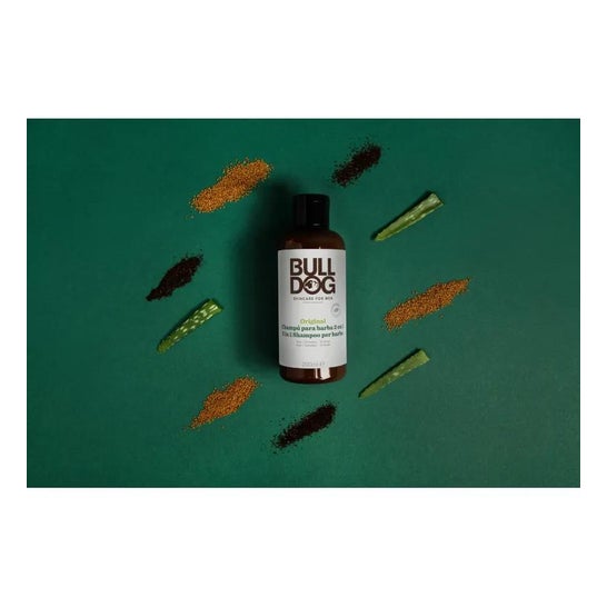 Bulldog Skincare For Men Original Champú & Acondicionador Barba es un producto 2 en 1 diseñado específicamente para el cuidado de la barba masculina. Este champú y acondicionador limpia suavemente el vello facial mientras le proporciona hidratación.