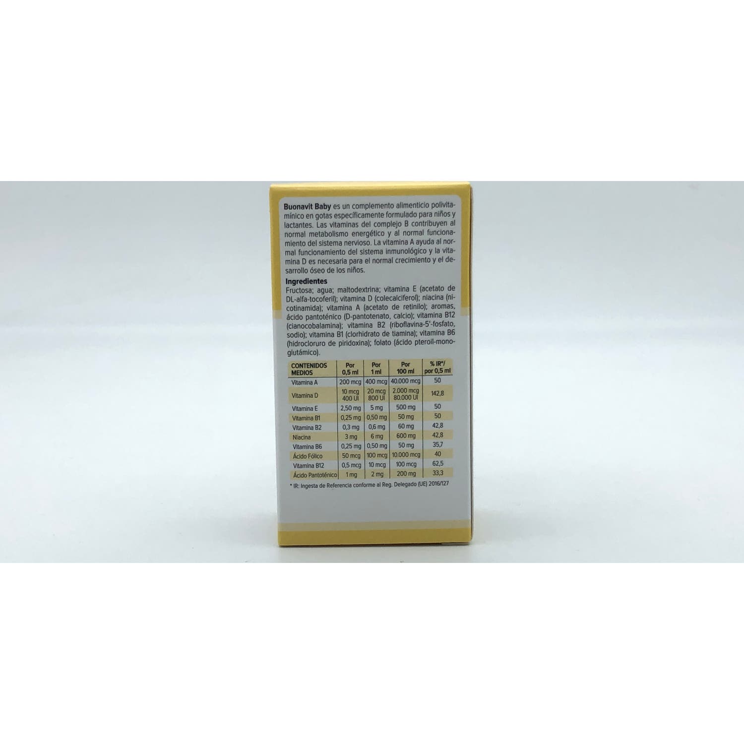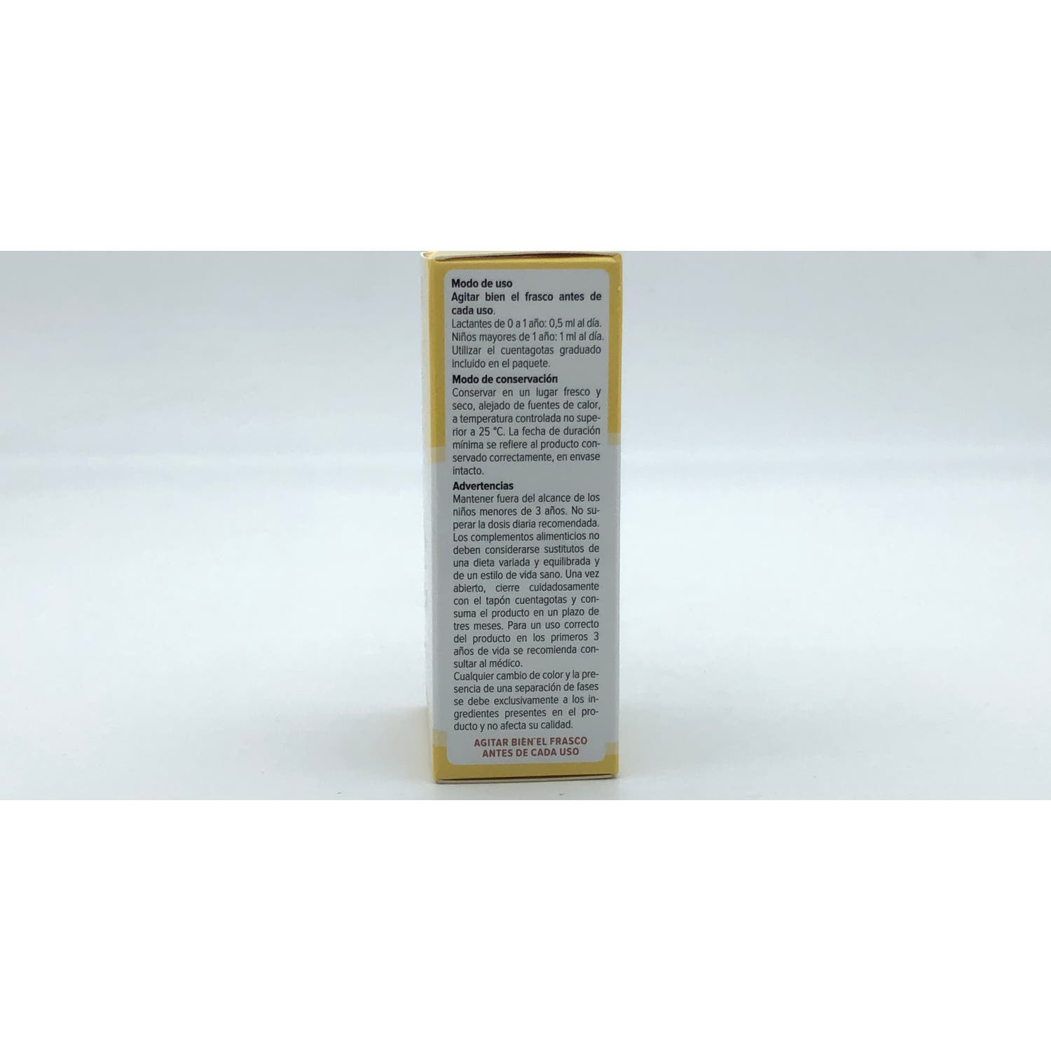 Complemento alimenticio en formato líquido, con pipeta incorporada para facilitar su administración, elaborado con un complejo multivitamínico especialmente desarrollado para favorecer el buen crecimiento de los bebés, desde su nacimiento.