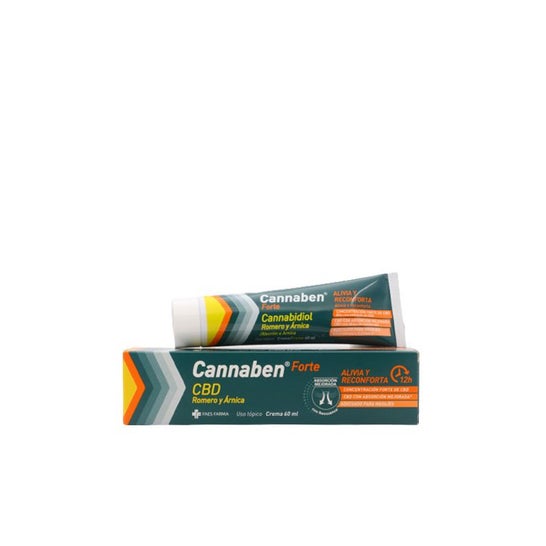 Cannaben Forte Crema 120 ml es un producto de aplicación tópica formulado con una alta concentración de CBD, aceite esencial de romero y extracto de árnica. Además, contiene aceite Neossance® Squalane, que favorece una óptima liberación de CBD en la piel.