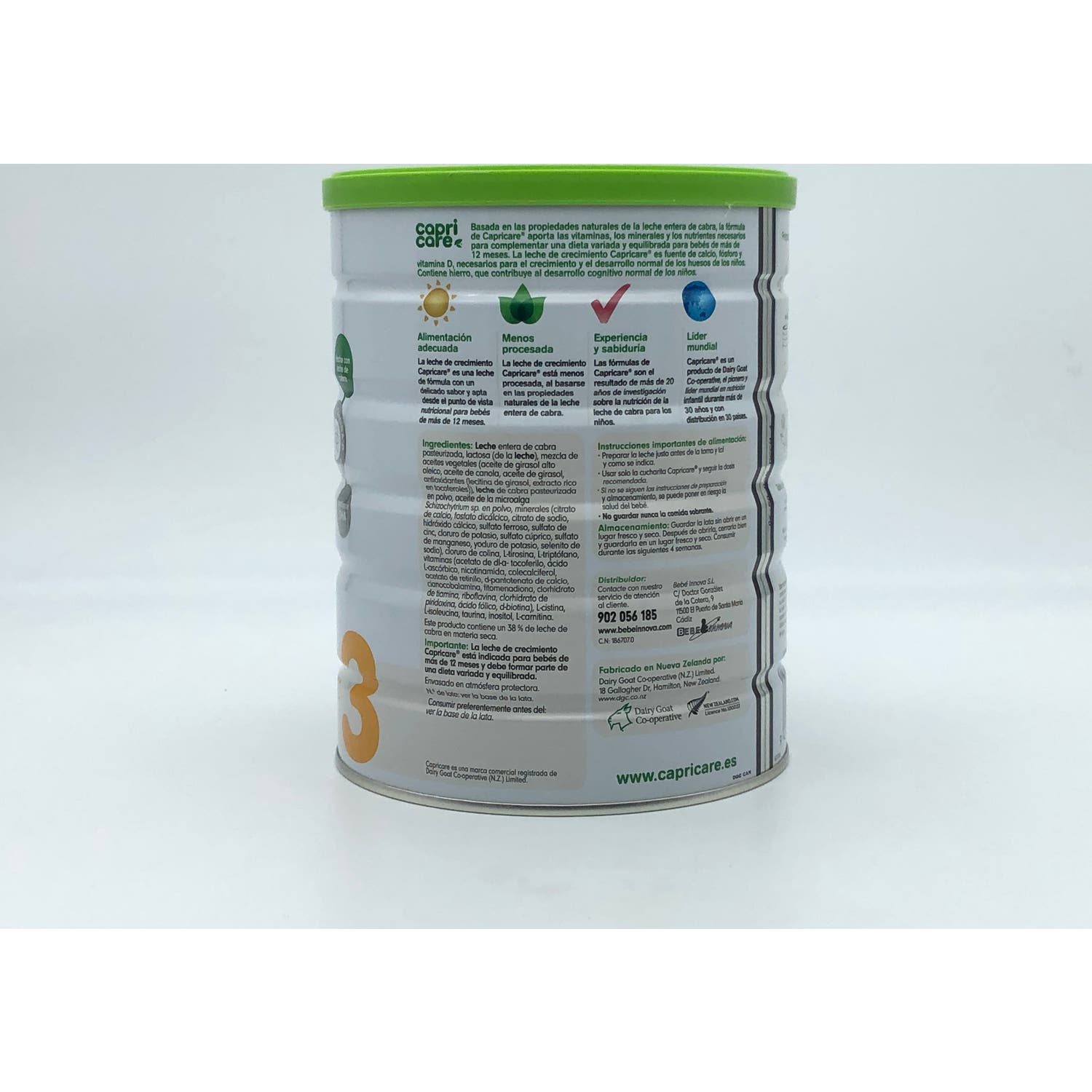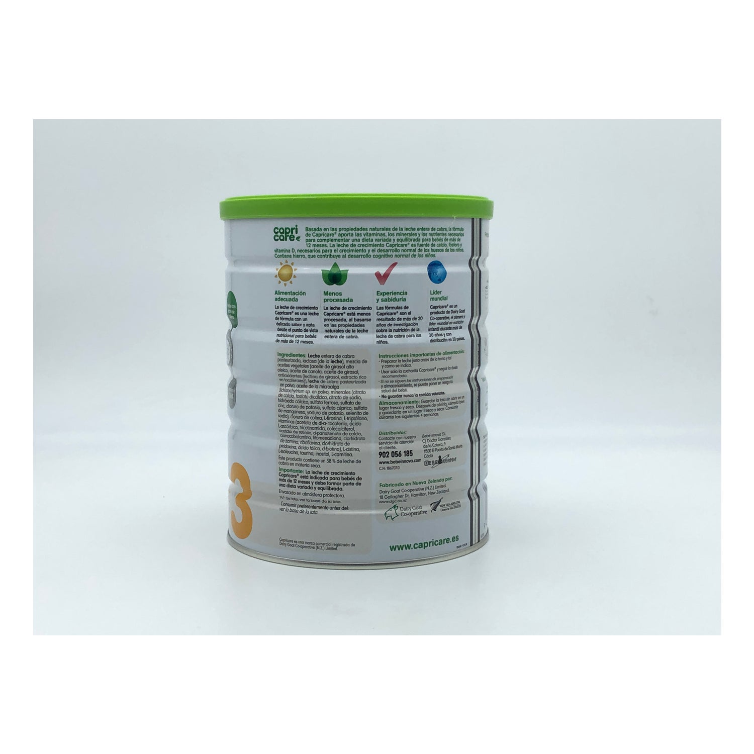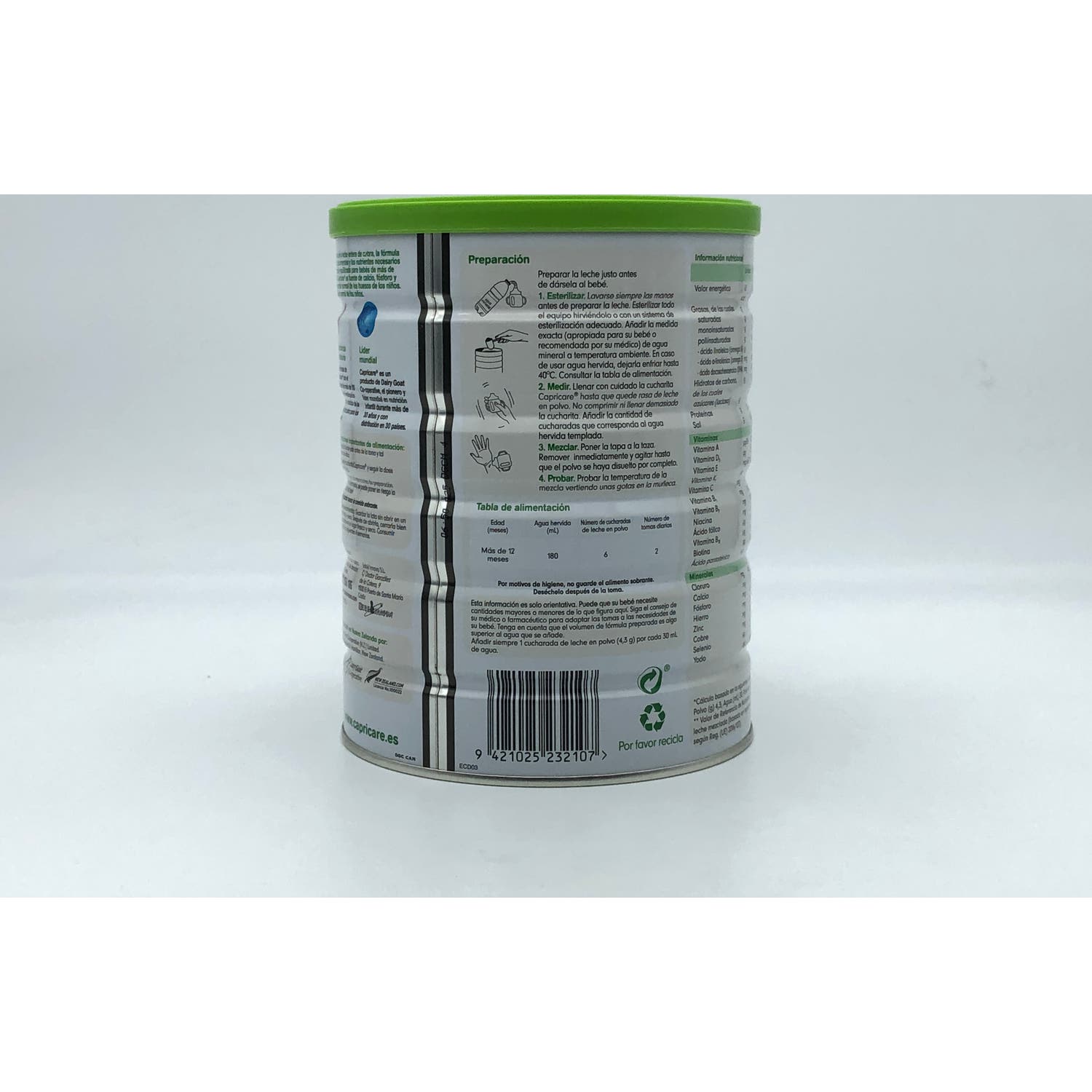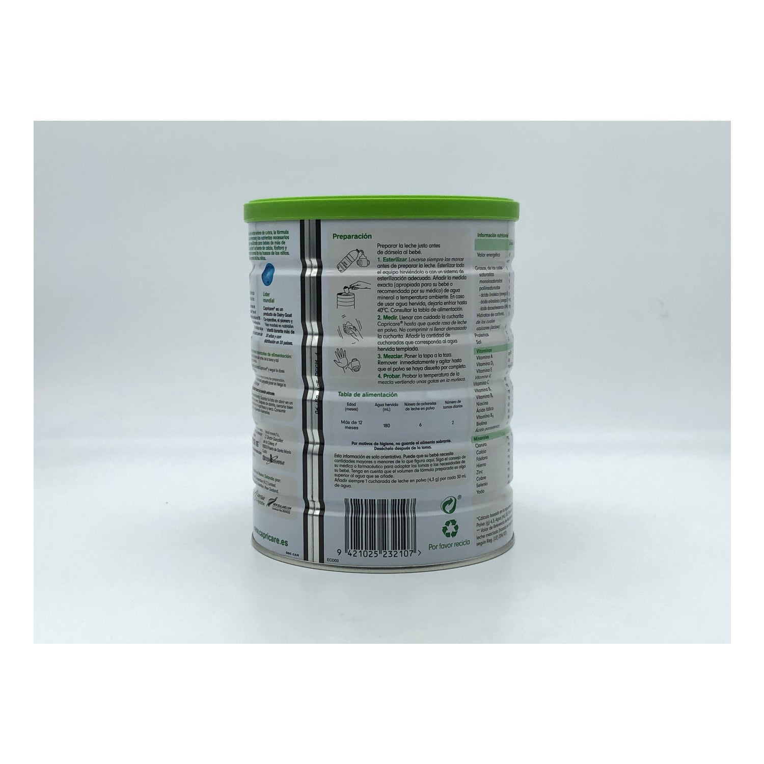Capricare® Leche Infantil a Partir de 12 Meses 800g es una leche de fórmula elaborada a partir de leche de cabra.
