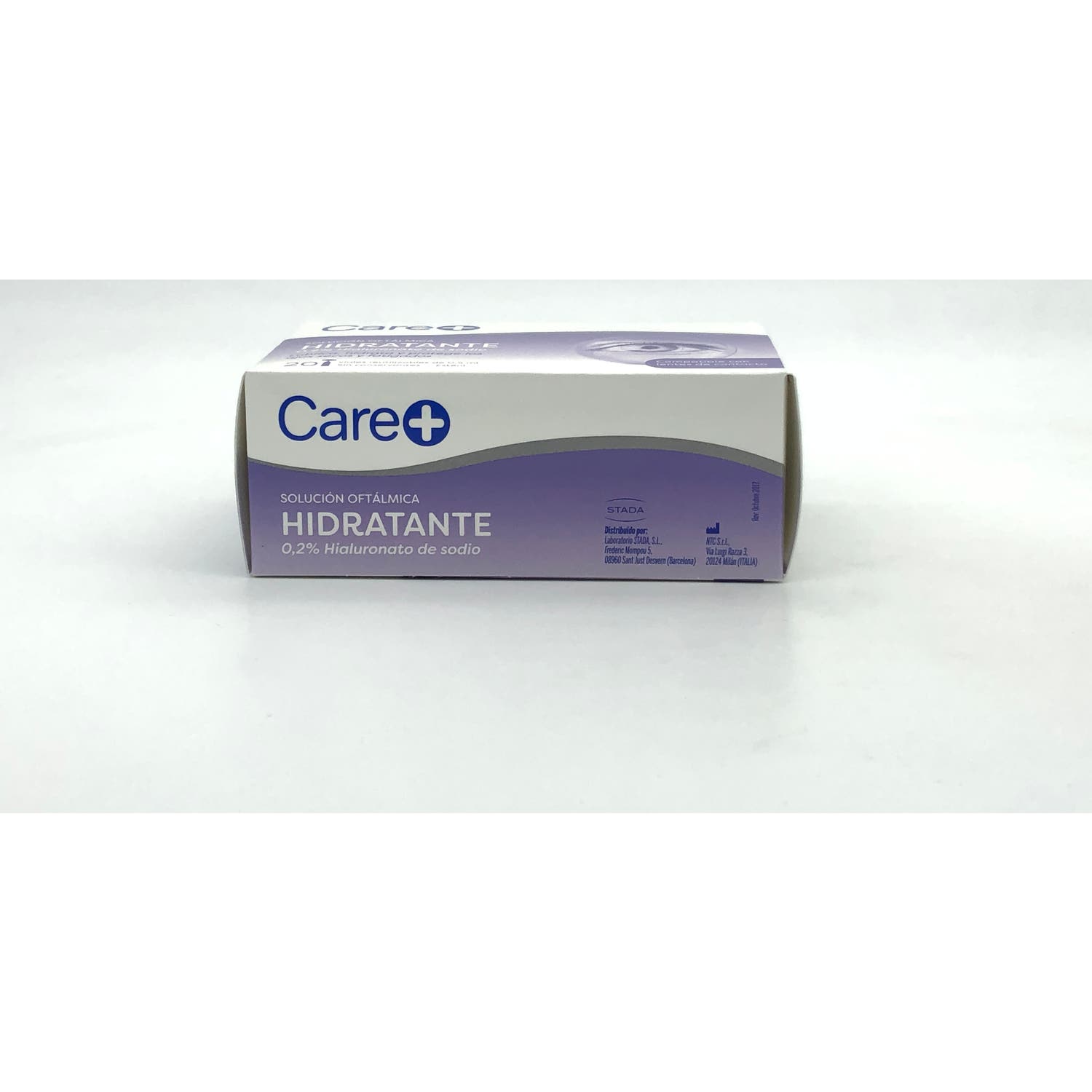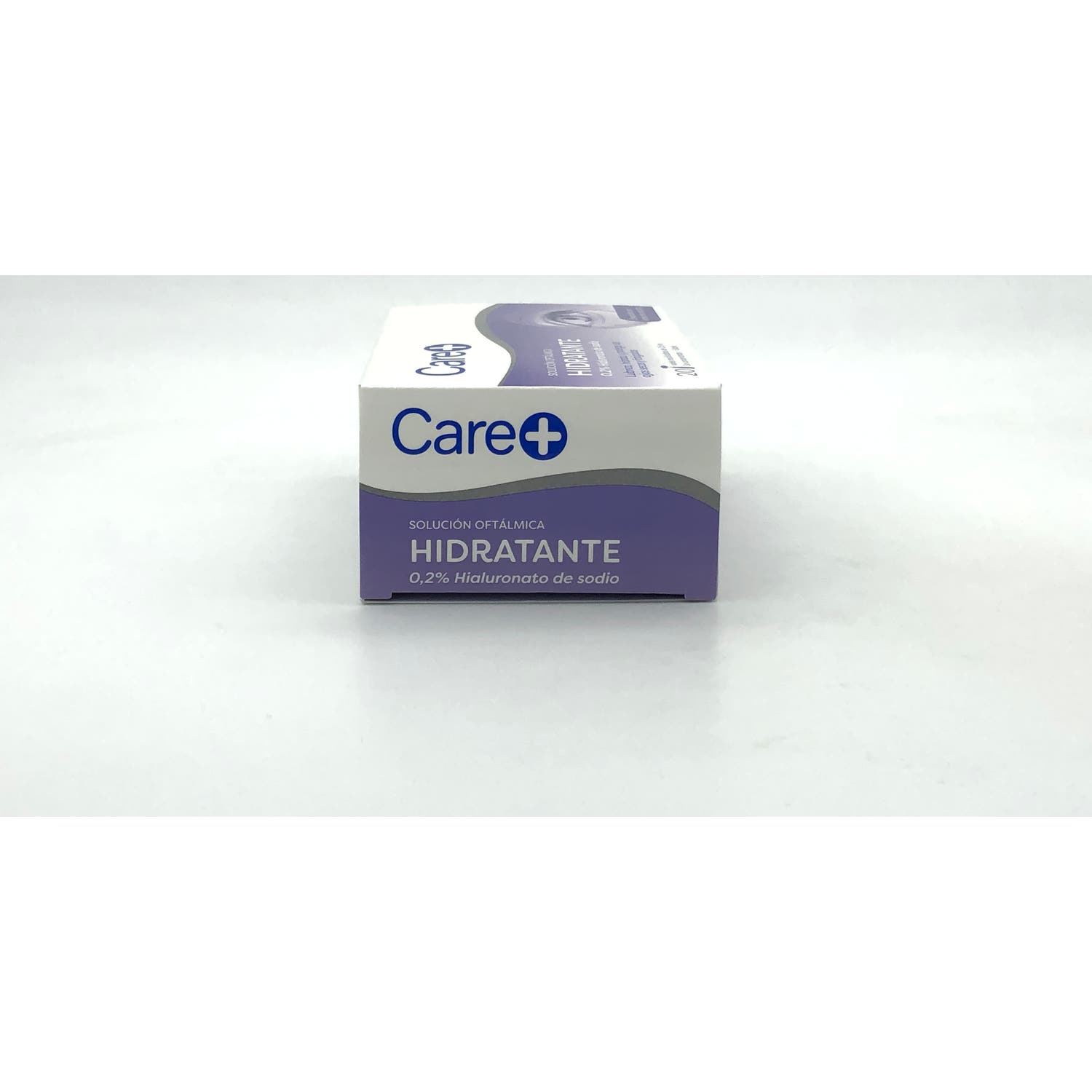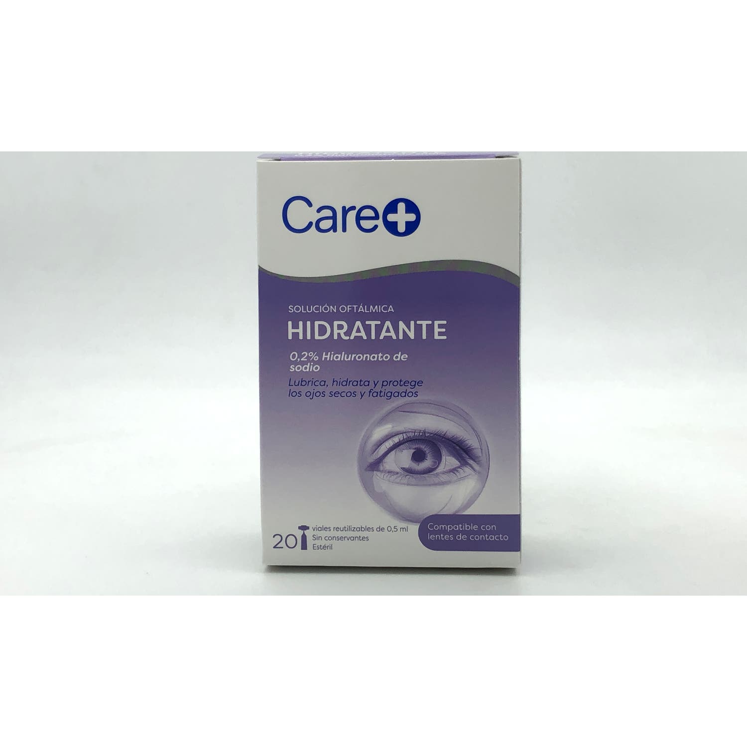 Care+ Solución Oftálmica Hidratante 20x0,5ml es una solución que humedece, lubrica y ayuda a hidratar los ojos secos y fatigados, gracias a su contenido en hialuronato de sodio.