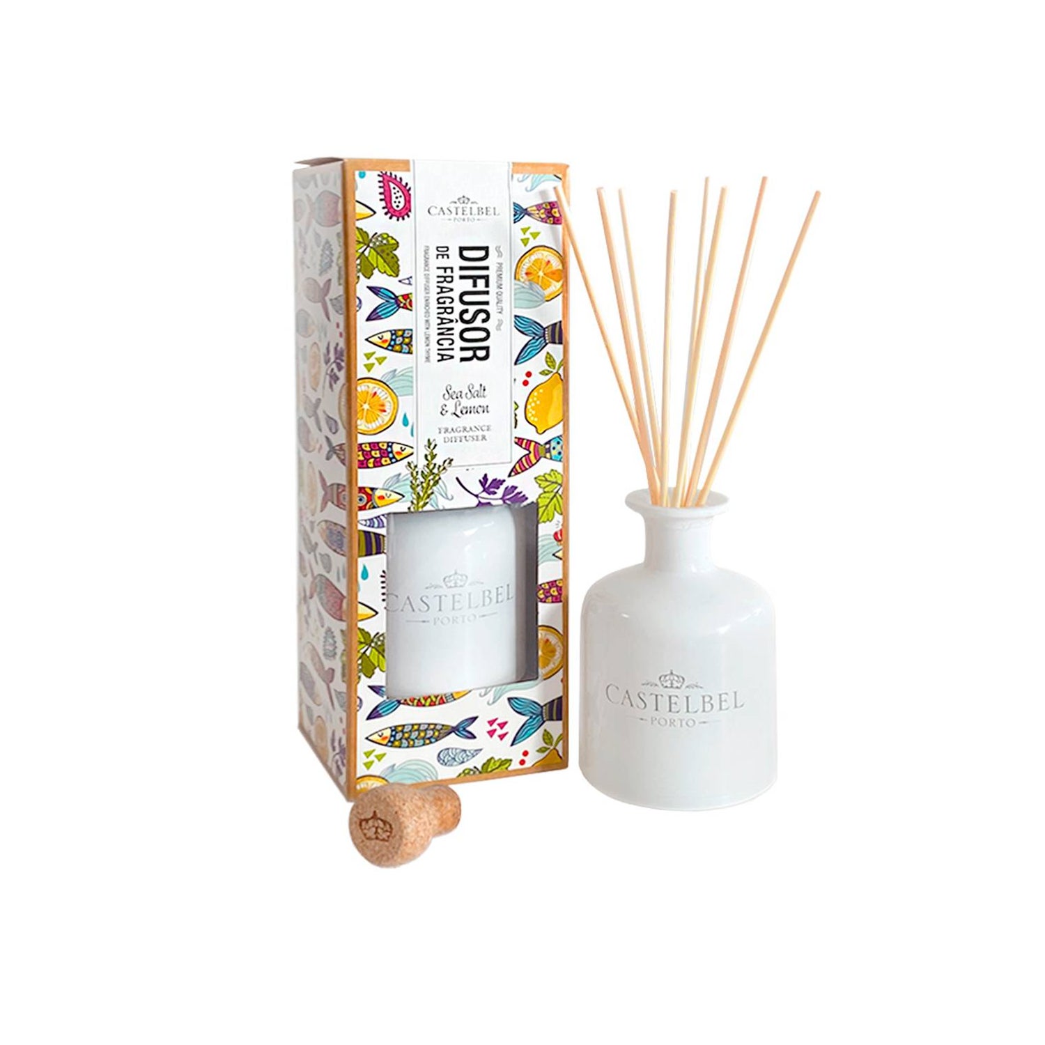 Castelbel Sardinha Difusor Sais Marinhos & Limão 250ml es la opción perfecta para mantener la cocina fresca y libre de olores indeseados. Este elegante difusor, elaborado en vidrio blanco opaco y adornado con el emblemático diseño de la sardina portuguesa, está formulado para perfumar los ambientes culinarios, aportando sofisticación y bienestar al hogar.