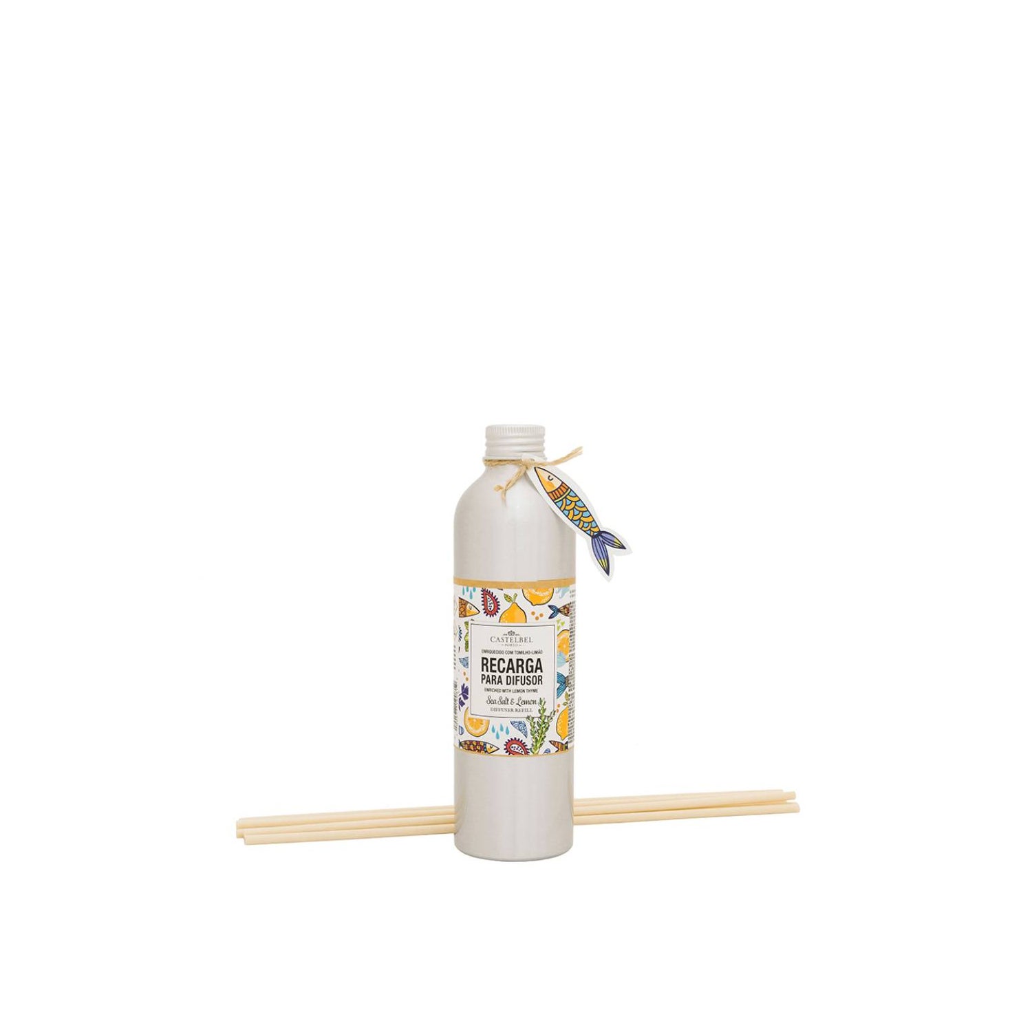 Castelbel Sardinha Recarga Difusor Sais Marinhos & Limão 250ml es ideal para revitalizar el ambiente de la cocina con una fragancia fresca y duradera. Esta recarga combina aromas marinos y cítricos, diseñada para neutralizar olores y aportar una sensación de limpieza en espacios culinarios.