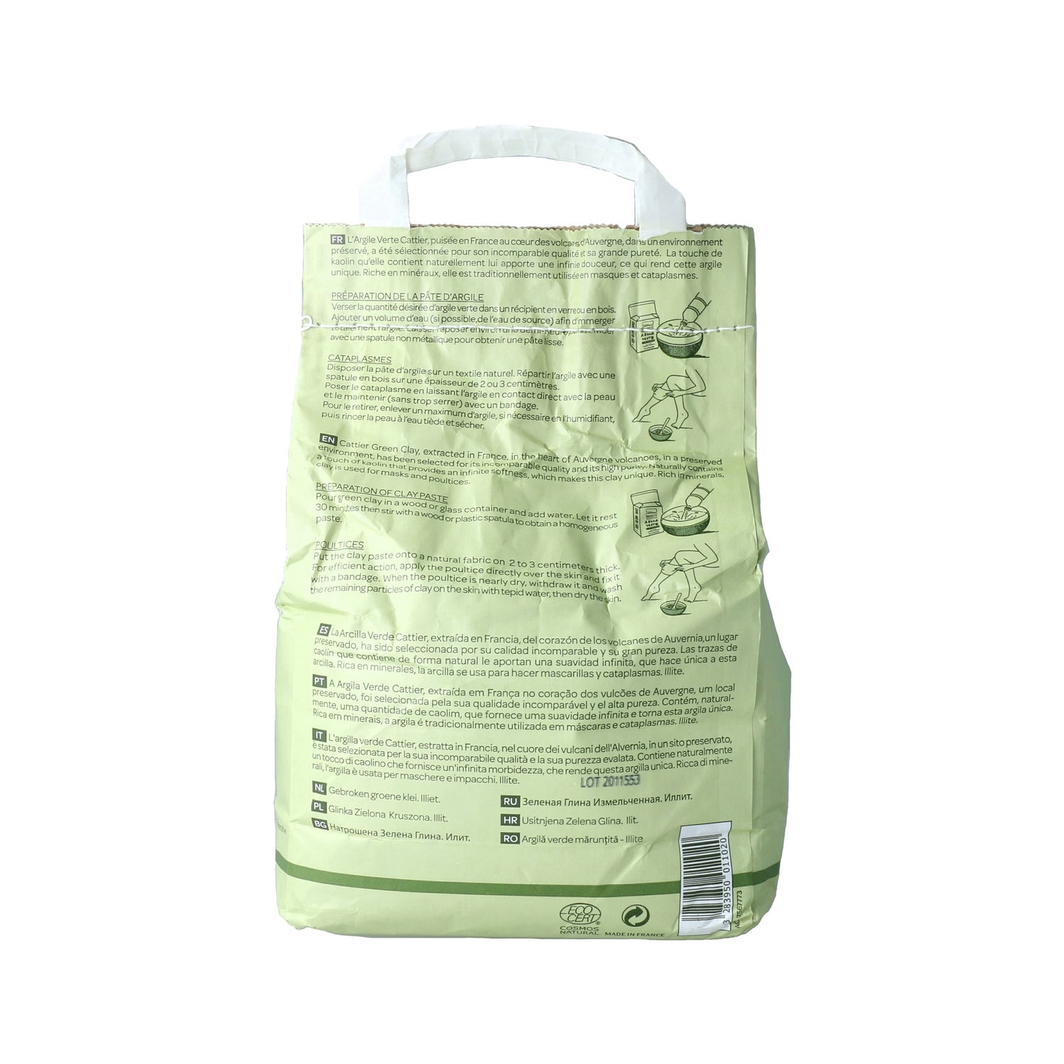 Cattier Arcilla verde Triturada 3kg es una arcilla verde que se usa tradicionalmente como mascarilla o cataplasma.