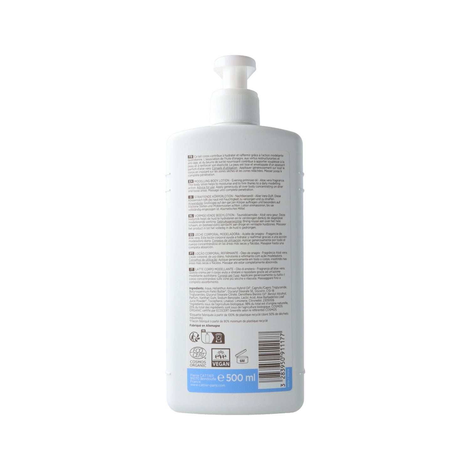 Cattier Leche Corporal Modeladora Aloe Vera y Onagra BIO 500ml es una emulsión corporal fluida que contribuye a hidratar y proteger la piel a diario.