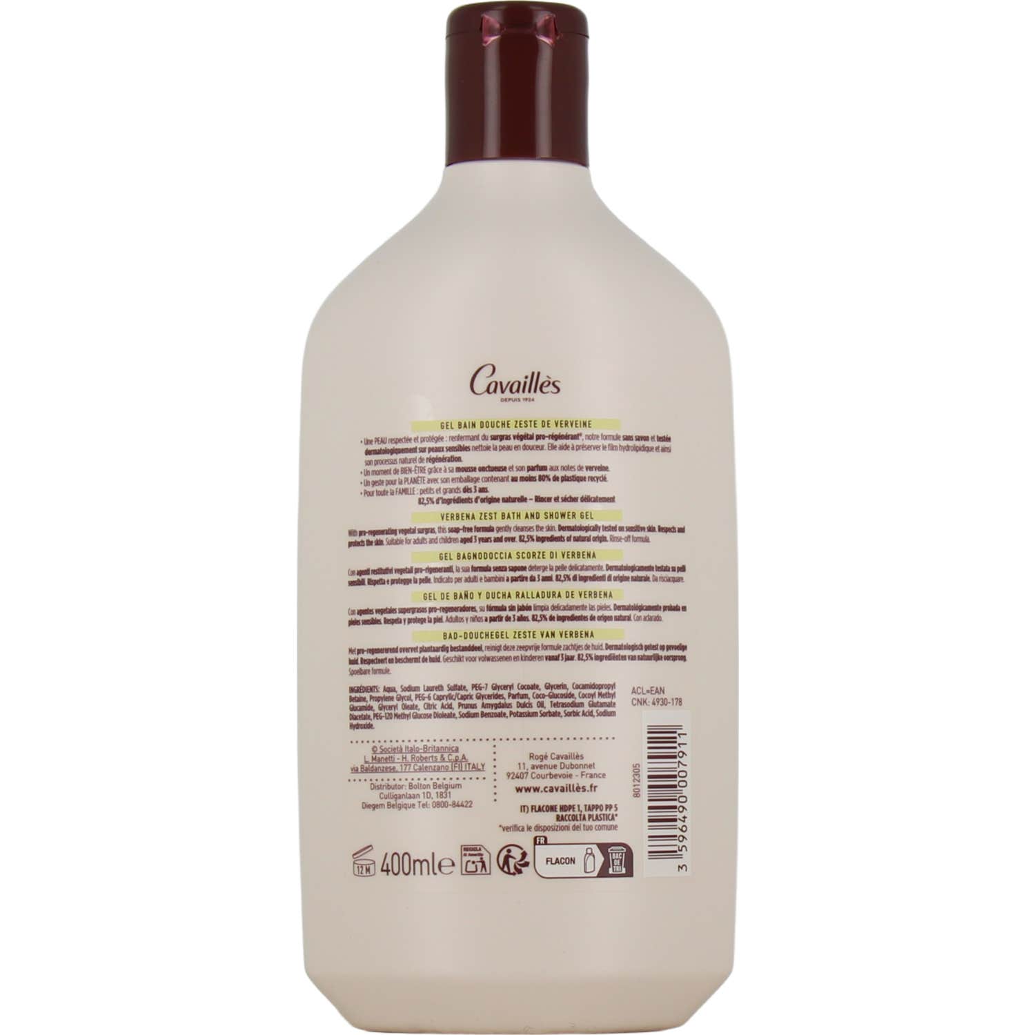 Cavaillès Gel Baño Ducha Zeste de Verveine Piel Sensible es un producto diseñado para el cuidado de la piel sensible. Su fórmula, que incluye un componente de origen vegetal pro-regenerante, se presenta sin jabón y ha sido probada dermatológicamente, garantizando una limpieza suave que respeta y protege la piel. Este gel ayuda a mantener el film hidrolipídico, favoreciendo así el proceso natural de regeneración cutánea.