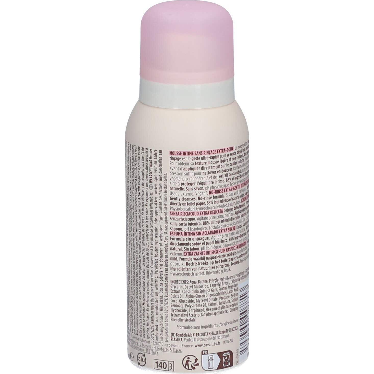 Cavaillès L'Intime Sin Aclarado Espuma Intima Extra Suave 100 ml es una solución práctica y rápida para el cuidado diario de la higiene íntima. Su fórmula está enriquecida con ingredientes naturales, destacando:
