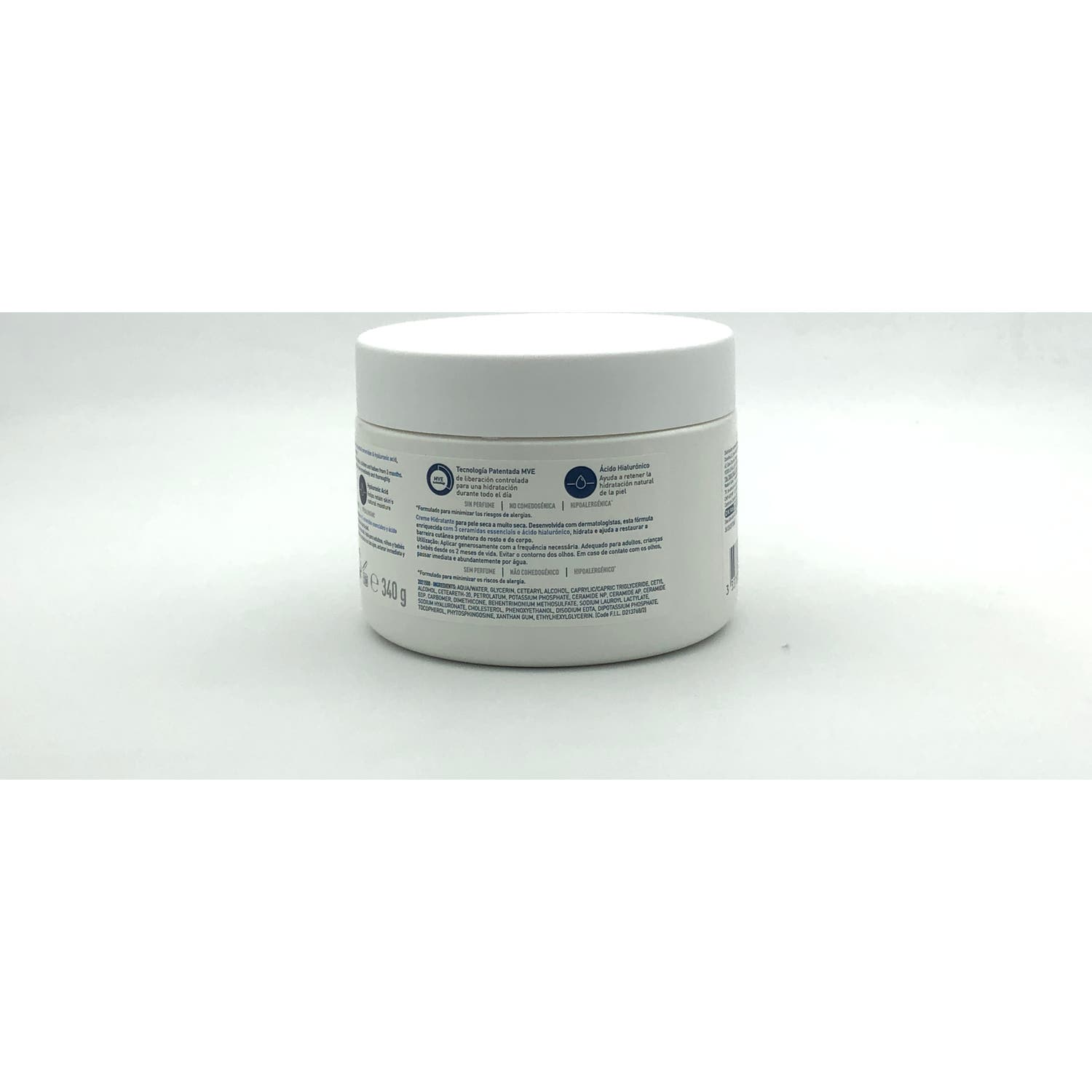 CeraVe Crema Hidratante 340g es una crema de textura ligera y no grasa, diseñada para hidratar y reparar la barrera protectora de la piel seca o muy seca de rostro y cuerpo.