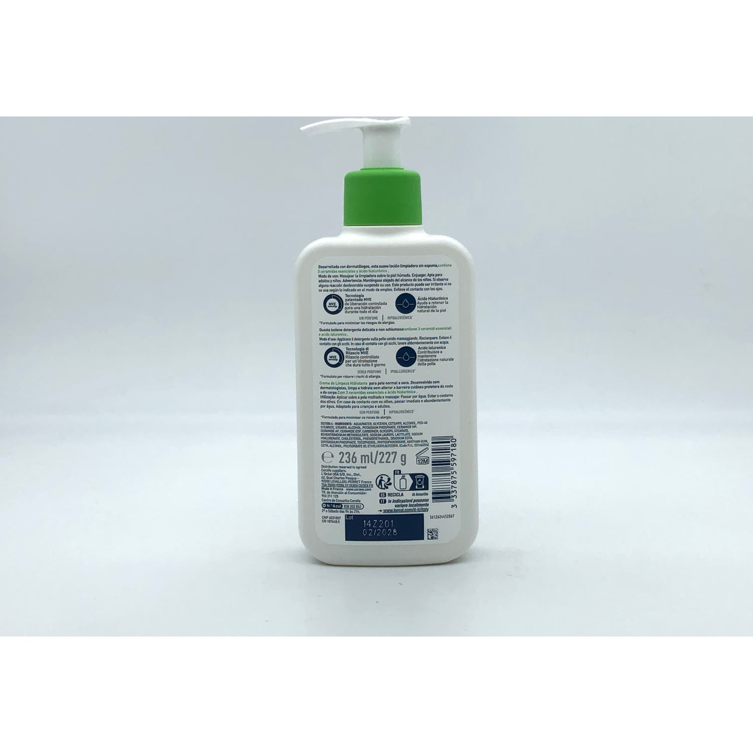 Su fórmula ultraligera, desarrollada por dermatólogos, contiene tres ceramidas esenciales 1, 3 y 6-II) que ayudan a restaurar y mantener la barrera protectora natural cutánea y ácido hialurónico, que elimina suavemente la suciedad y la grasa cutánea, al mismo tiempo que aumenta la hidratación. Además, posee la tecnología MVE® que proporciona una hidratación duradera, gracias a su sistema de difusión continua de los activos y Niacinamida aporta un efecto calmante a la piel.