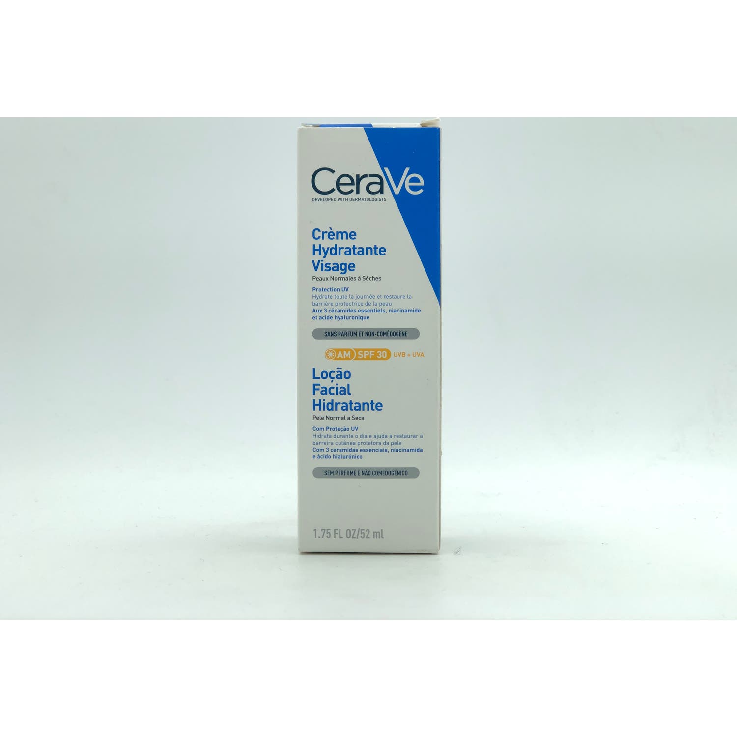 CeraVe Loción Hidratante de Rostro Piel Normal y Seca SPF30 52ml es una crema diseñada para hidratar el rostro y reparar la barrera cutánea, con protección solar SPF30.