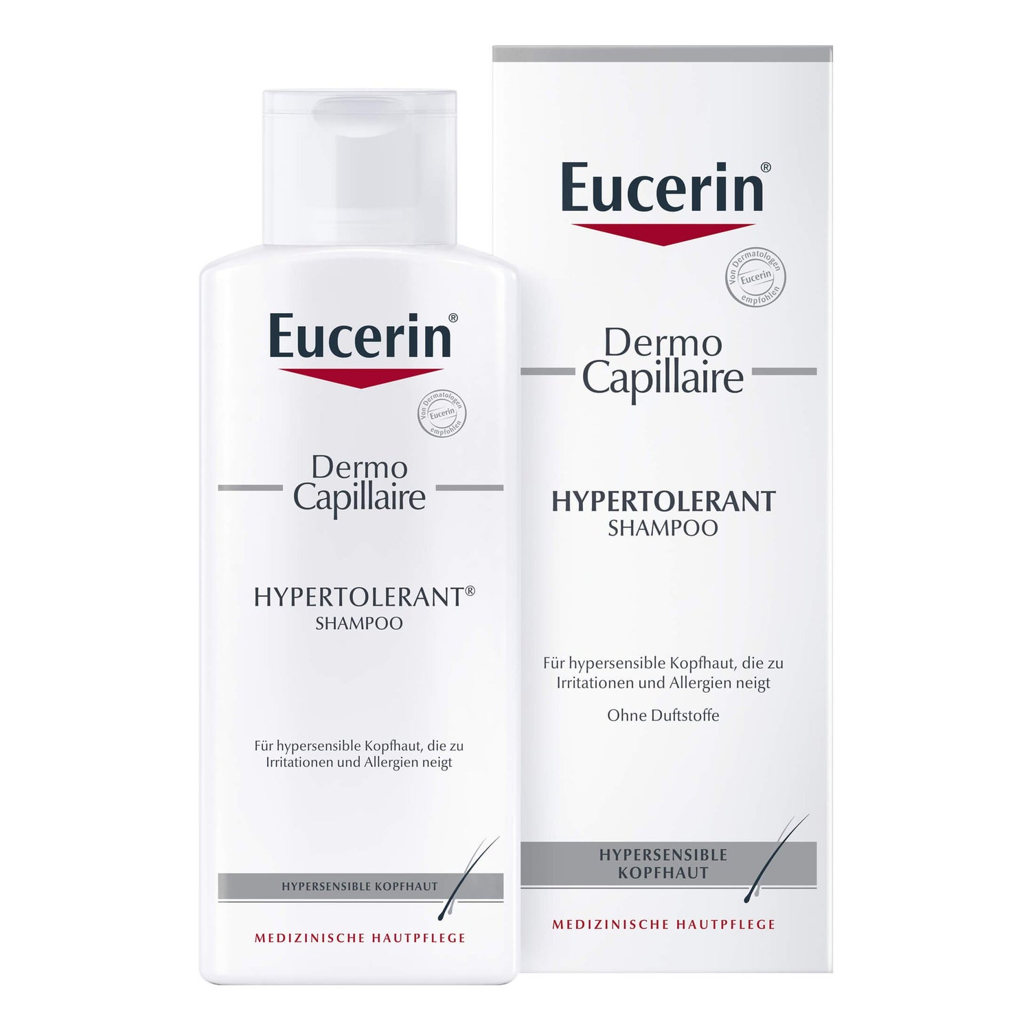 Eucerin Dermo Capillaire Champú Alta Tolerancia mejora el cuero cabelludo. Limpia suavemente el cuero cabelludo y el cabello. Contiene Bisabolol calmante. Alivia la sensación de picor, reduce la sensación de tirantez y el sobrecalentamiento del cuero cabelludo y alivia la irritación.