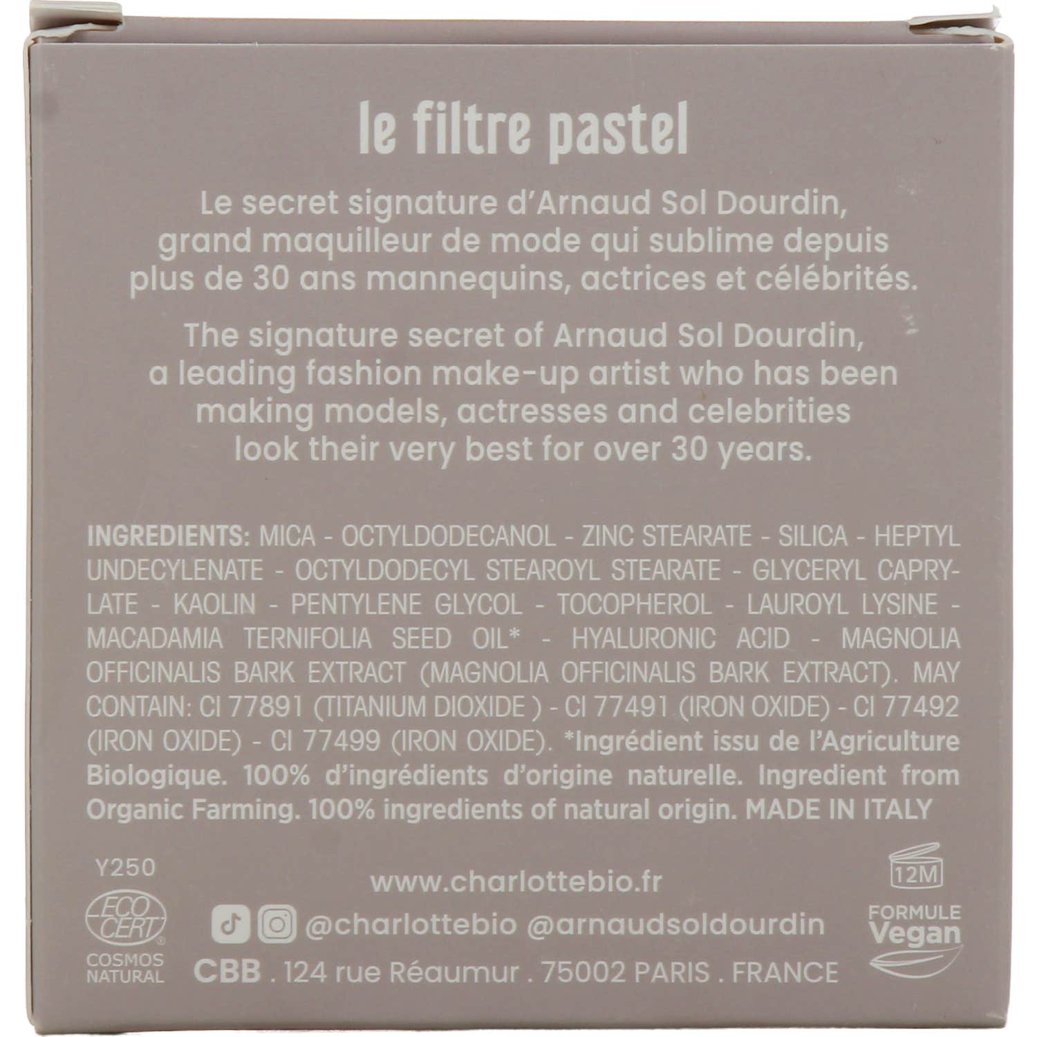 Gracias a su compromiso con una fórmula limpia, Charlotte Bio Filtro Pastel 04 Coutainville no ha sido probado en animales y se elabora en Italia. Es recomendable consultar las guías de tonos para encontrar la opción ideal que resalte la luminosidad natural de la piel.