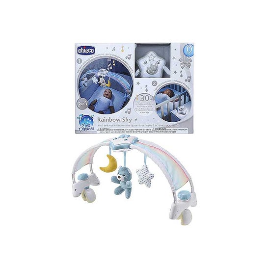 Juguete evolutivo para bebés recién nacidos que consta de un arco con ositos de peluche, que se puede enganchar de manera sencilla en la cuna. Favorece la calma y ayuda a relajar al infantil gracias a la música clásica. Tiene un temporizador que permite controlar el apagado. Cuenta con un botón para regular el volumen.