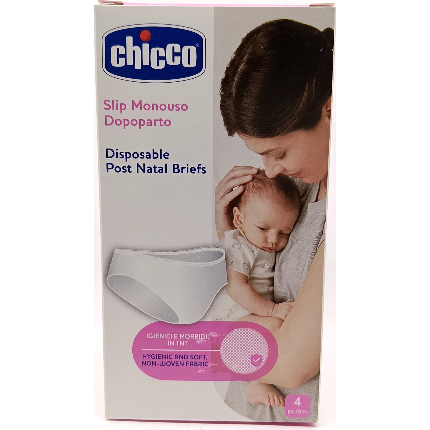 Chicco Braguitas Desechables Postparto Mammy T-G (46/48) están compuestas por tejido no tejido higiénico. De un solo uso, son suaves y especialmente indicadas en caso de puntos o cesárea. Preapradas para su uso con compresa. Indicadas, por su comodidad, para la estancia en el hospital.