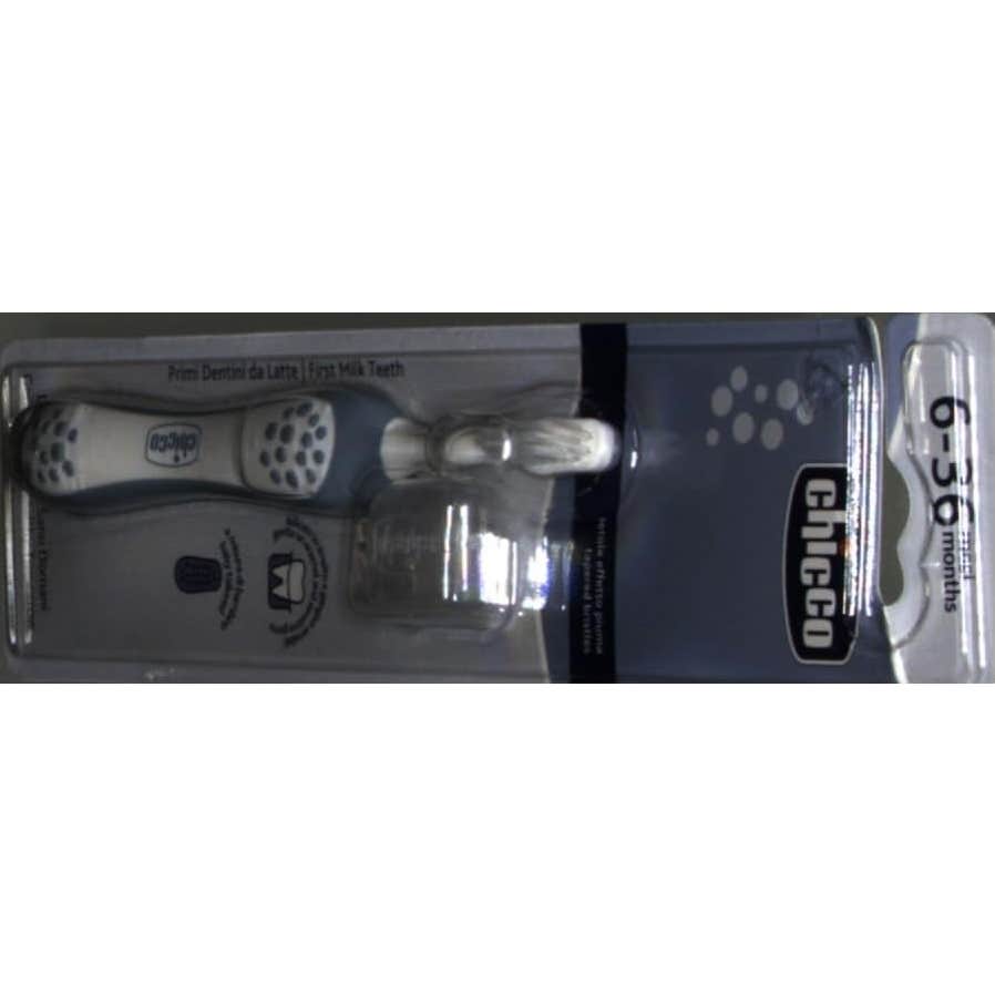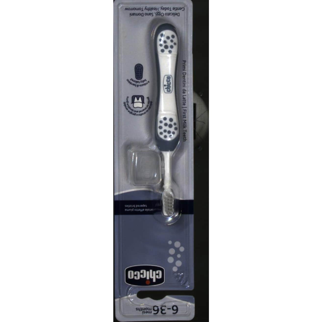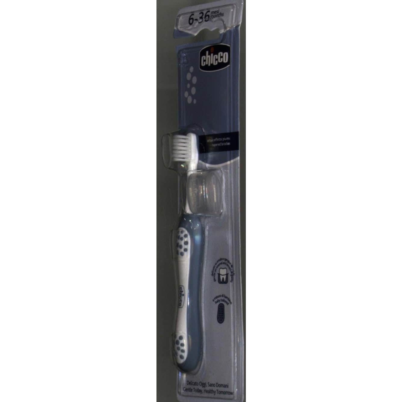 Chicco Cepillo Dental Primeros Dientes 6-36M Azul 1ud es un cepillo para que los niños aprendan la importancia de la higiene bucodental.