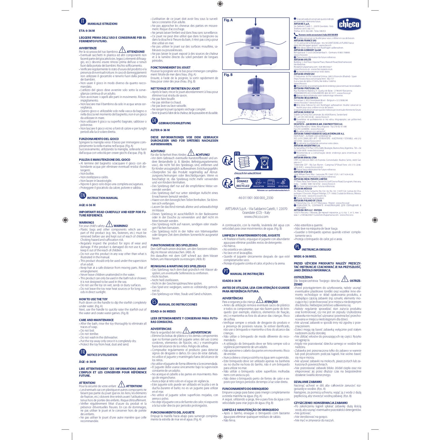 Chicco Estrela do Mar Gira Gira 6-36M es un juguete acuático diseñado para hacer más divertidos los momentos de baño de tu bebé. Este juguete en forma de estrella no solo genera interesantes efectos al sumergirse en el agua, sino que también gira sobre sí mismo, añadiendo un elemento de entretenimiento al juego.