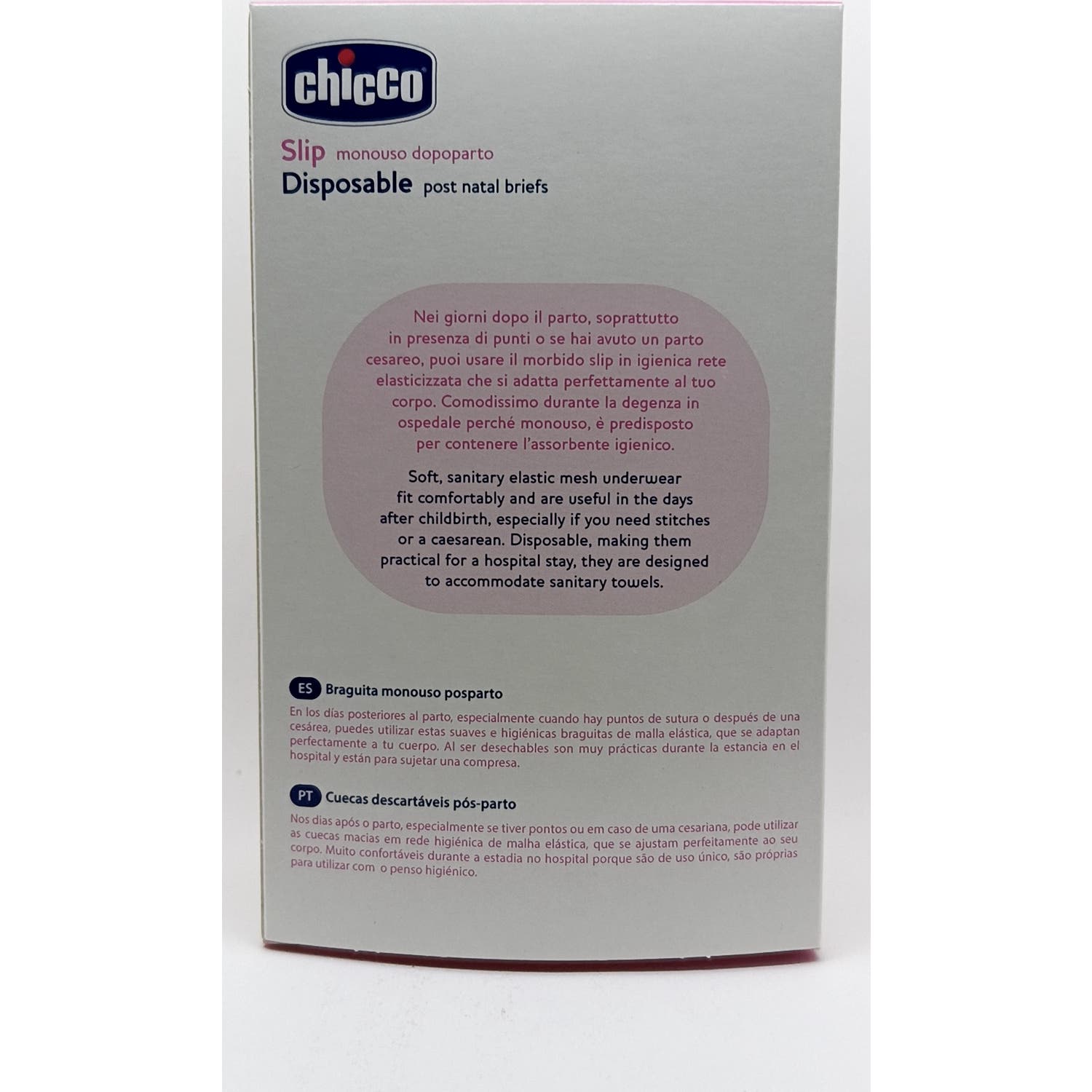 Chicco Mammy braguitas monouso post parto 4uds son unas bragas desechables para el posparto. Ayudan a evitar el posible daño o rozadura de los tejidos de las bragas de uso frecuente y proporcionan máximo confort.