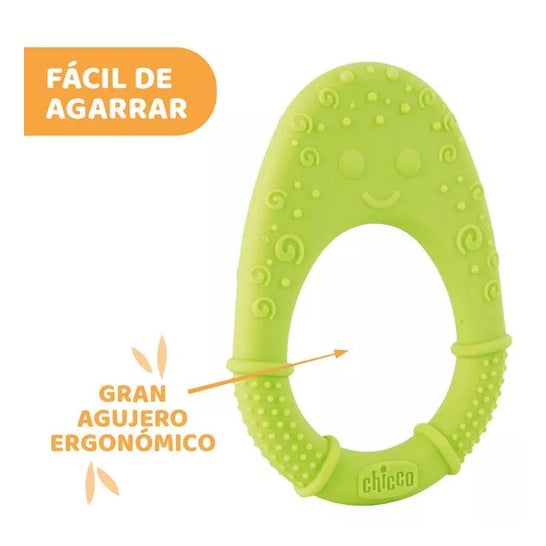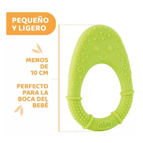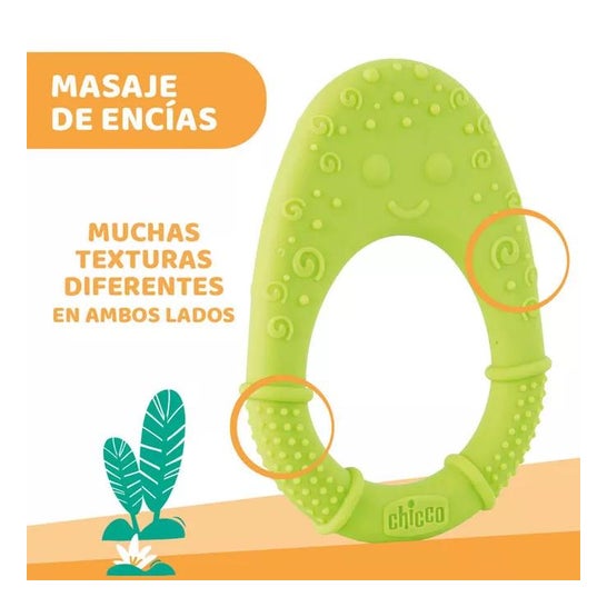 El diseño presenta diferentes relieves y texturas por ambas caras para asegurar diferentes sensaciones, masajear las encías doloridas y proporcionar alivio cuando los dientes están creciendo.