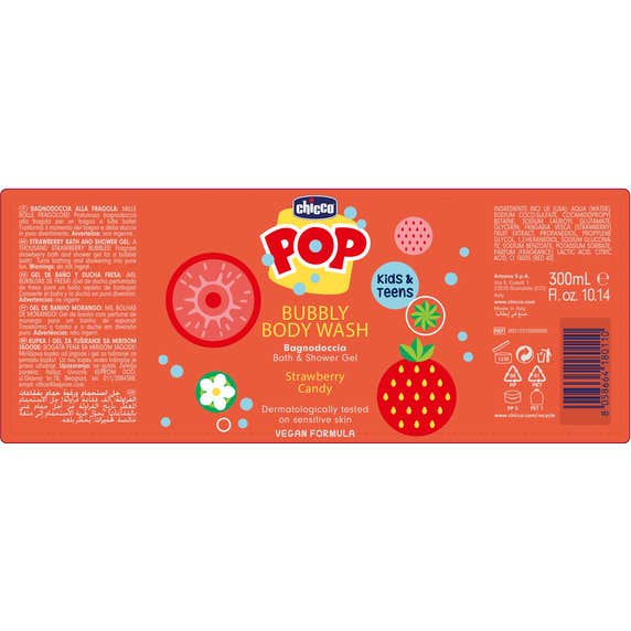 Chicco Pop Kids & Teens Gel de Baño Fresa 300ml es un gel de ducha diseñado especialmente para niños y pré-adolescentes. Este producto transforma la rutina de baño en una experiencia placentera y divertida gracias a su fragancia irresistible.
