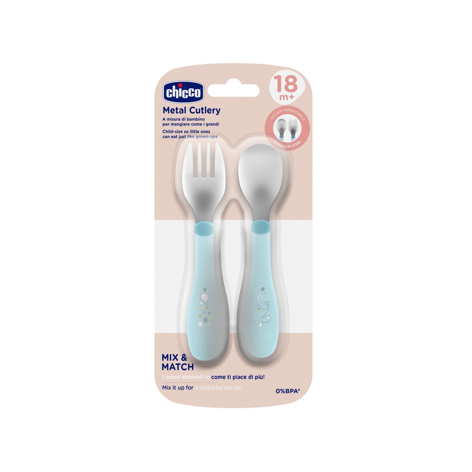 Chicco Set Duo Cubiertos Inox 18M+ Azul